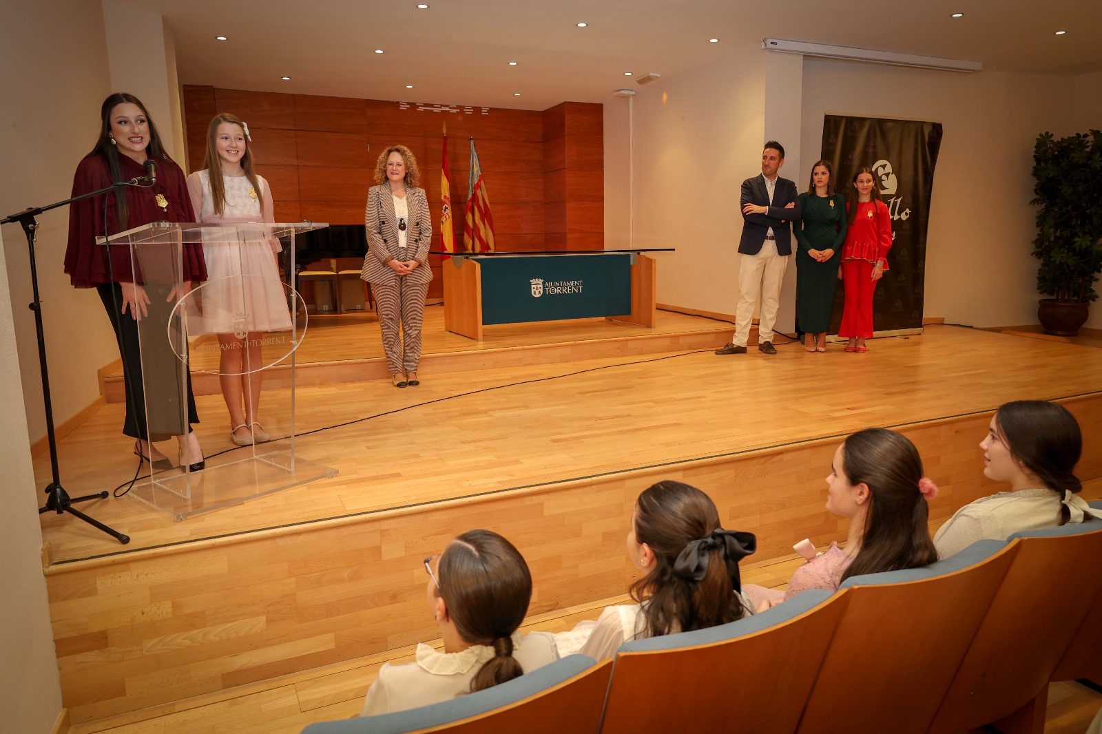 La alcaldesa, Amparo Folgado, dedicó unas palabras a Andrea y Sara, “hoy Torrent os entrega algo más que una joya. Os entrega un símbolo de confianza y de orgullo colectivo. Cada vez que miréis estas peinetas y estos aderezos recordaréis que representáis a todo un pueblo que os acompaña en este camino. Que estas piezas os hablen siempre de gratitud, de responsabilidad y de amor por nuestras raíces”.