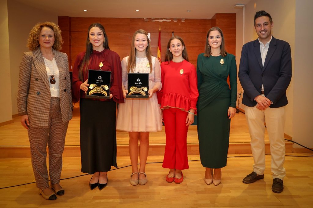 La alcaldesa Amparo Folgado junto al concejal de Fallas, Aitor Sánchez fueron los encargados, en el escenario, de entregar las peinetas y aderezos a las Falleras Mayores, que han sido cincelades con el escudo de la ciudad y su nombre, y en una de las púas figura el recuerdo de su reinado. Y a sus Cortes de Honor, peinetas creadas al agua con dibujo de motivos florales.