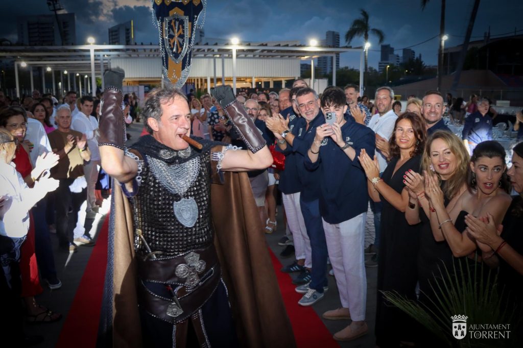Los encargados de abrir la noche han sido un grupo de bailes de Torrent, tras ellos, los alféreces, Esther García Espinós de la Comparsa Califats Sarraïns y Andrés Campos Casado de la Filà Templaris, quienes han realizado una espectacular entrada, acompañados por sus estandartes. A continuación, han hecho su entrada los capitanes, Miguel García Forment de la Filà Conqueridors y Vicente Bacete Comes de la Comparsa Abbasíes.
