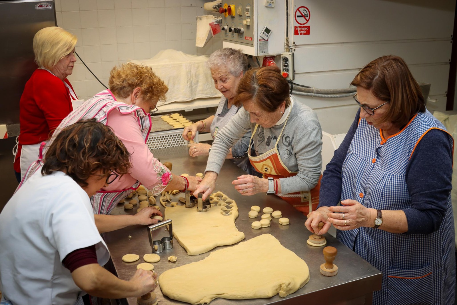 La jornada en el horno ha sido frenética, cada voluntaria tiene su tarea asignada: desde amasar la masa hasta dar forma a los «santblaiets», pasando por el marcado con el sello característico con la imagen del santo y el posterior empaquetado una vez que alcanzan la temperatura adecuada. El esfuerzo colectivo se completa con la colaboración de los horneros, quienes aseguran que los dulces se cuezan a la perfección, manteniendo su sabor y textura únicos.