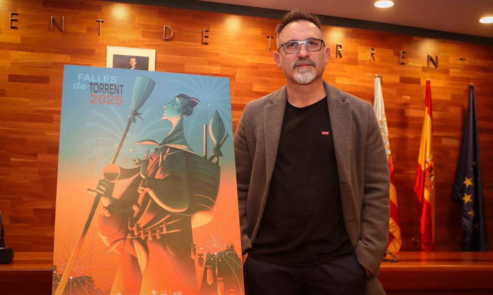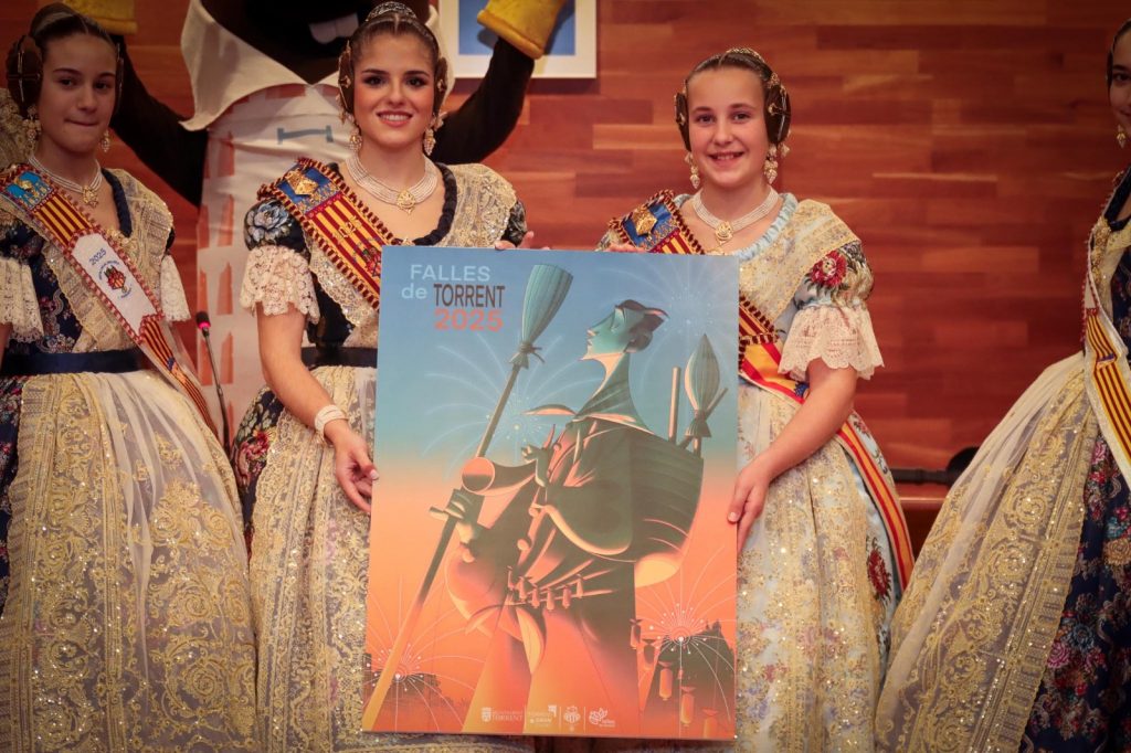 La alcaldesa Amparo Folgado, junto al reconocido diseñador e ilustrador valenciano Ramón Pla han desvelado el cartel, que representará las ‘Falles de Torrent 2025’