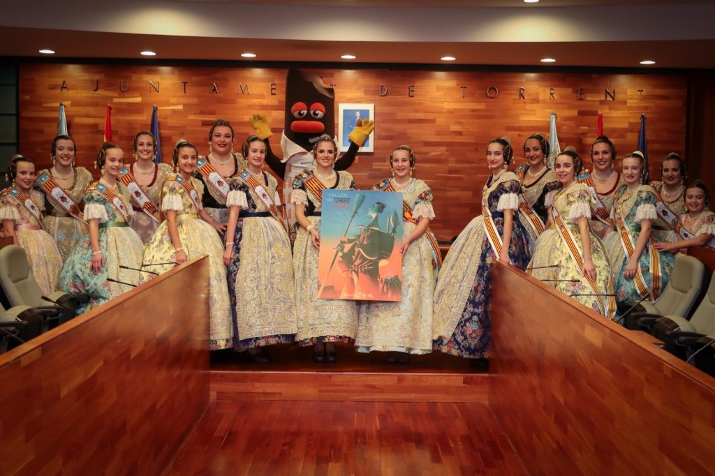 El salón de Plenos del edificio consistorial, ha sido el escenario de la presentación del diseño gráfico de la imagen que representará a las ‘Fallas de Torrent 2025’. Se han encargado de desvelar el secreto mejor guardado, la alcaldesa, Amparo Folgado acompañada de Aitor Sánchez, concejal de Cultura y Fallas, el diseñador e ilustrador valenciano Ramón Pla, encargado de realizar la obra. Las Falleras Mayores de Torrent 2025 Alicia Moreno y Ana Barberá y sus Cortes de Honor, han compartido también la imagen que representará la imagen de las Fallas de Torrent para 2025, en un año muy especial e inolvidable para ellas.