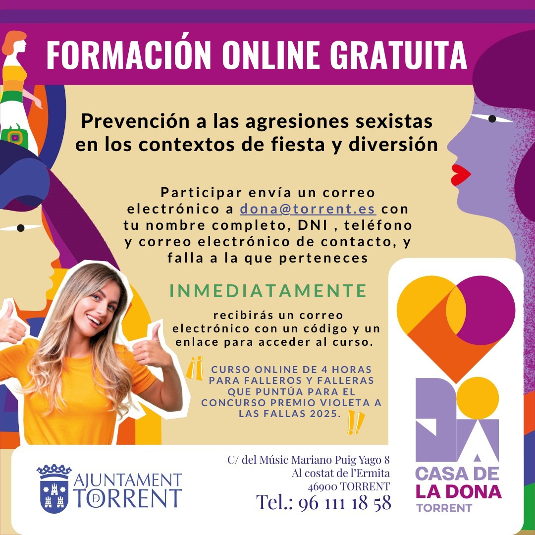Para garantizar que todas las comisiones falleras tengan la oportunidad de participar en el certamen, la Casa de la Dona ha diseñado un taller online de cuatro horas sobre prevención de agresiones contra la mujer en contextos festivos. Esta formación busca dotar a los falleros y falleras de herramientas para identificar y prevenir situaciones de violencia de género en espacios de ocio y celebración.