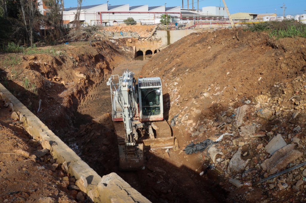 Además, el Ayuntamiento ha coordinado con la empresa torrentina Ximo Mora, la limpieza y restauración del cauce aguas arriba del barranco, que estaba completamente anegado por restos vegetales y escombros, garantizando así un flujo adecuado en futuras lluvias.