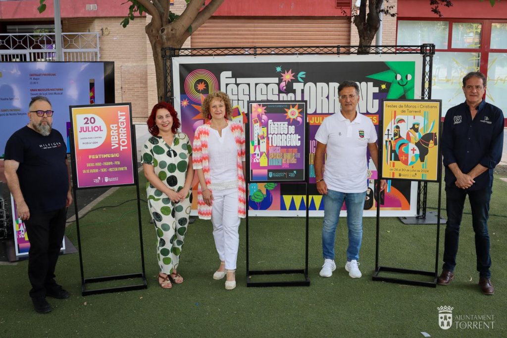 Torrent ha presentado la programación festiva que se llevará a cabo en el municipio a lo largo del mes de julio. La alcaldesa de la ciudad, Amparo Folgado, junto a la concejal de Fiestas, María Fernández, los capitanes Moro y Cristiano, Vicente Bacete y Miguel García, junto con Julián León, diseñador oficial del cartel, han sido los encargados de desgranar el programa.