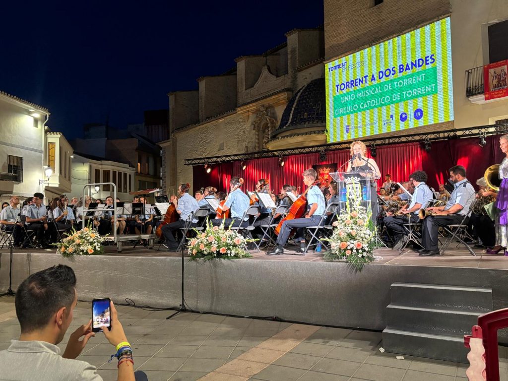 Un año más, la ciudad de Torrent vivió una noche mágica de música y tradición con el esperado concierto “Torrent a Dos Bandes”, celebrado el pasado sábado 19 de julio en la emblemática Plaza de la Iglesia. La cita, que reunió a las dos grandes formaciones sinfónicas de la ciudad —la Unió Musical de Torrent (UMT) y el Círculo Católico de Torrent—, volvió a conquistar al numeroso público que llenó la plaza en una velada marcada por la excelencia musical y el orgullo de ciudad con sus bandas.