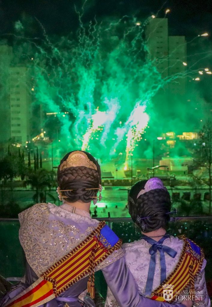 Las encargadas de dar el pistoletazo de salida fueron las Falleras Mayores de Torrent, María Peris y Vega Román, que pudieron contemplar el espectáculo desde el balcón del EMAT, acompañadas de sus Cortes de Honor, así como representantes de todas las fiestas de la ciudad de Torrent. Junto a la Alcaldesa Amparo Folgado, estuvo la Concejala de Turismo de la ciudad de Alicante, Ana Poquet, que no quiso perderse este espectáculo único, así como miembros del equipo de gobierno, de la corporación y los patrocinadores.