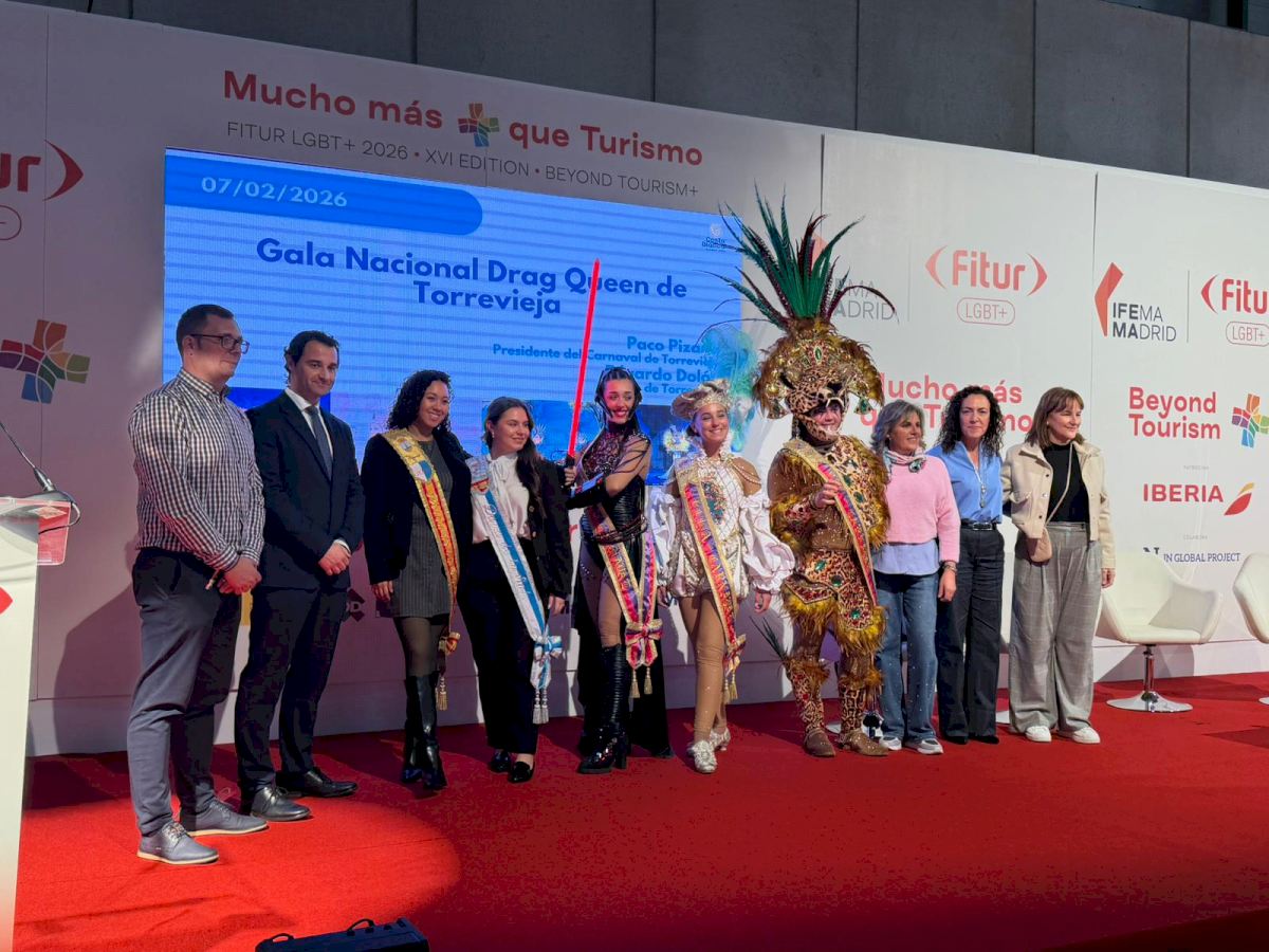 El alcalde de Torrevieja, Eduardo Dolón, y el presidente del Carnaval de Torrevieja, Francisco Pizana, acompañados por la Reina de la Sal, y las reinas y rey del Carnaval de Torrevieja, han presentado en el Stand LGTBI de la Feria Internacional de Turismo (FITUR) la XVIII Gala Drag Queen “Ciudad de Torrevieja”, uno de los eventos más emblemáticos del Carnaval de Torrevieja, que se celebrará el próximo 7 de febrero de 2026 en el Auditorio Internacional.