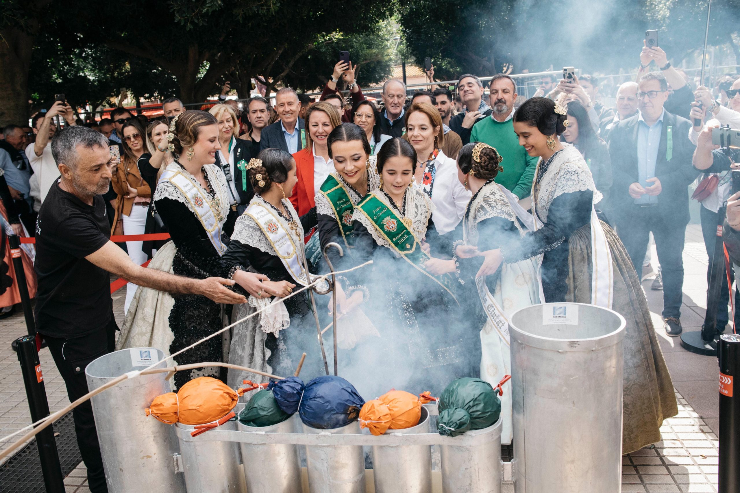 La alcaldesa de Castellón, Begoña Carrasco, junto a las reinas de las Fiestas, Paula Torres y Carla Ibáñez, la concejala de fiestas, Noelia Selma y concejales del gobierno, además de la presidenta de Les Corts, Llanos Massó, entre otras autoridades, han presidido el disparo de la quinta mascletà, a cargo de la pirotecnia Turís de Valencia, dentro del XXIX Concurso de Mascletaes “Ciutat de Castelló”. Esta mascletà ha utilizado 105 kilos de pólvora que ha sido disparada en el recinto de la calle María Rosa Molas, junto al Primer Molí.