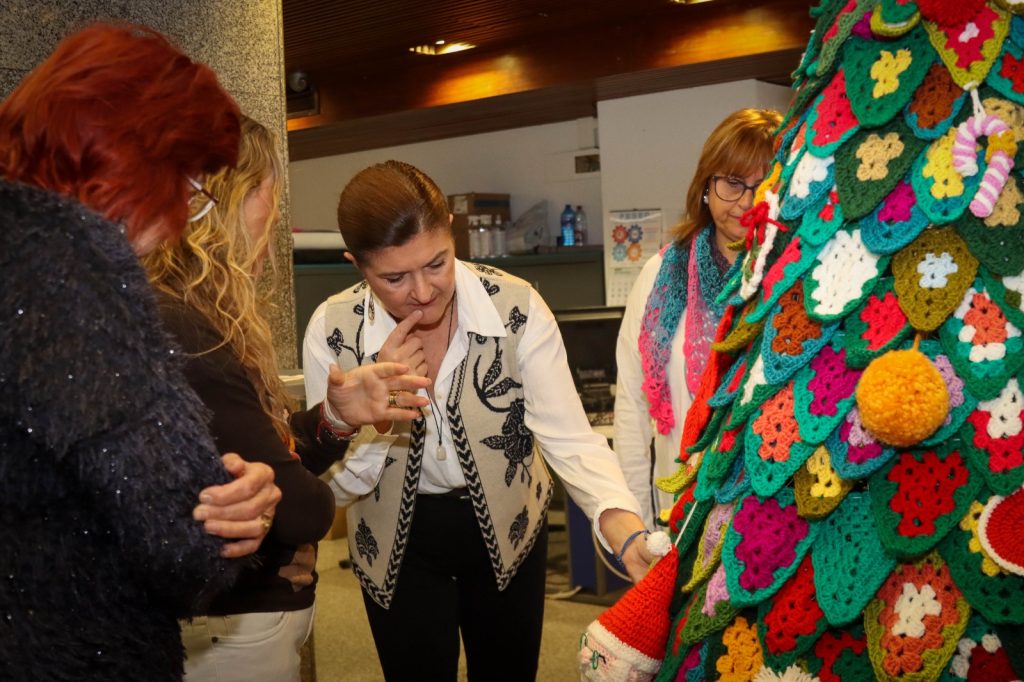 El hall del Ayuntamiento de Torrent luce este año un árbol de Navidad muy especial, fruto del esfuerzo y la creatividad de las mujeres de Casa de la Dona. Desde octubre, 23 ganchilleras han trabajado puntada a puntada para crear esta original obra de arte, compuesta por 500 grannies square (triángulos tejidos a mano) y adornos de ganchillo que aportan un toque único y colorido a la decoración navideña.