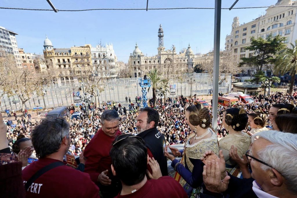 En el balcón consistorial, ha contado con la presencia de la vicepresidenta del Consell, Aitana Mas; el secretario autonómico, Iván Castañón y el Teniente General Jefe del Cuartel Terrestre de Alta Disponibilidad, Fernando García-Vaquero Pradal. Además el balcón ha contado con la presencia de las comisiones falleras de: Avda de Burjasot.-Joaquin Ballester-Reus, Felipe Bellver-;Madre Rafols, Quart–Turia, Padre Viñas-Agustin Lara, Avda Portugal- fragata, San Jose de la montaña-Teruel y Fray j. Rodríguez – Pintor Cortina; y las Juntas Locales Falleras de Sueca, Alginet, Manises, Benifayó y Massanassa.