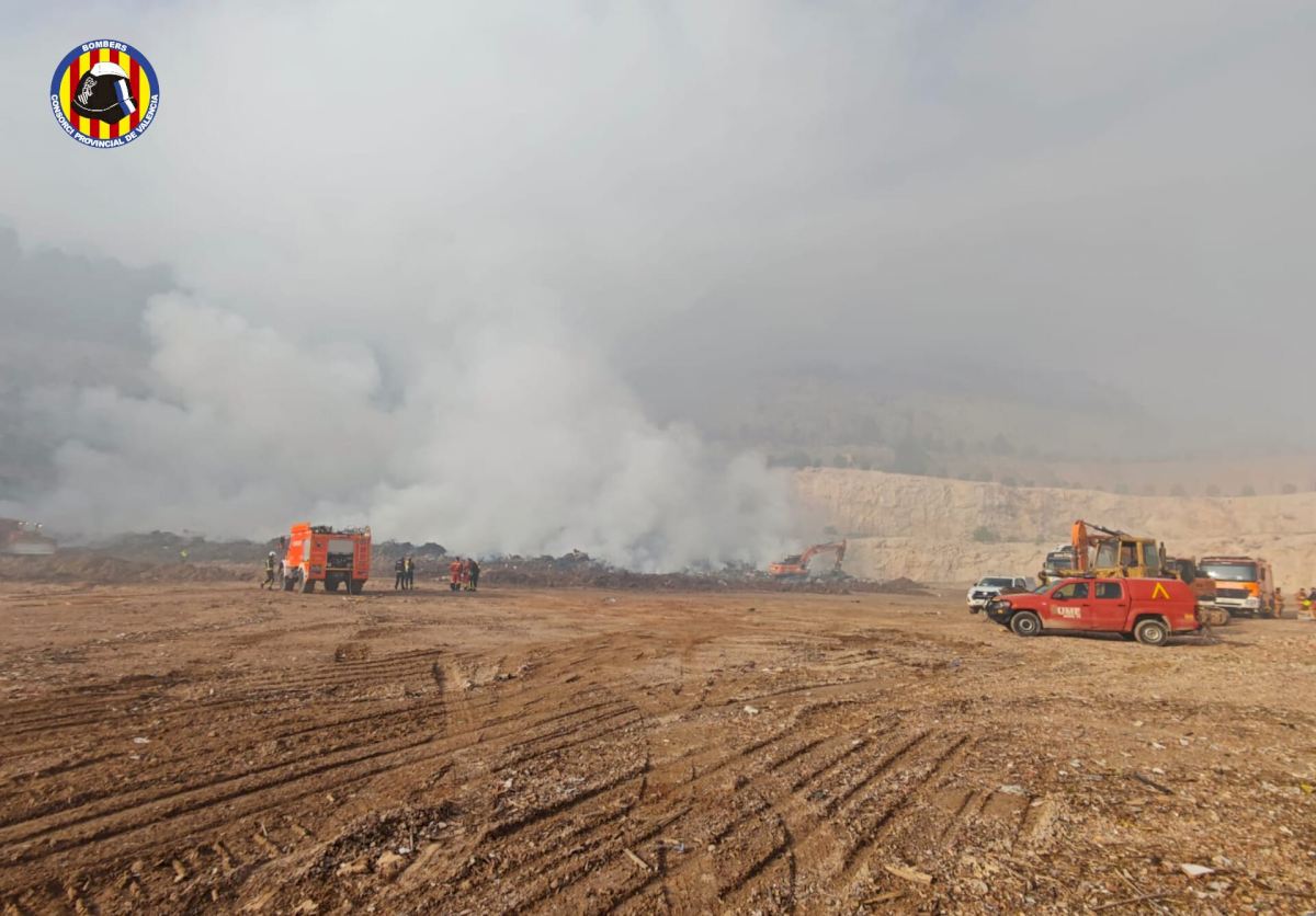 • El incendio en la cantera de Alberic sigue activo y los bomberos trabajan en ambos fuegos