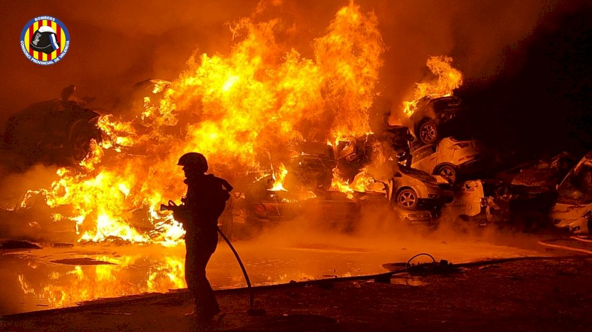 Varias dotaciones de bomberos tanto del Consorcio Provincial como del Ayuntamiento de Valencia han trabajado en la zona para atajar este segundo incendio simultáneo en zonas de acumulación de residuos tras la riada de Valencia.