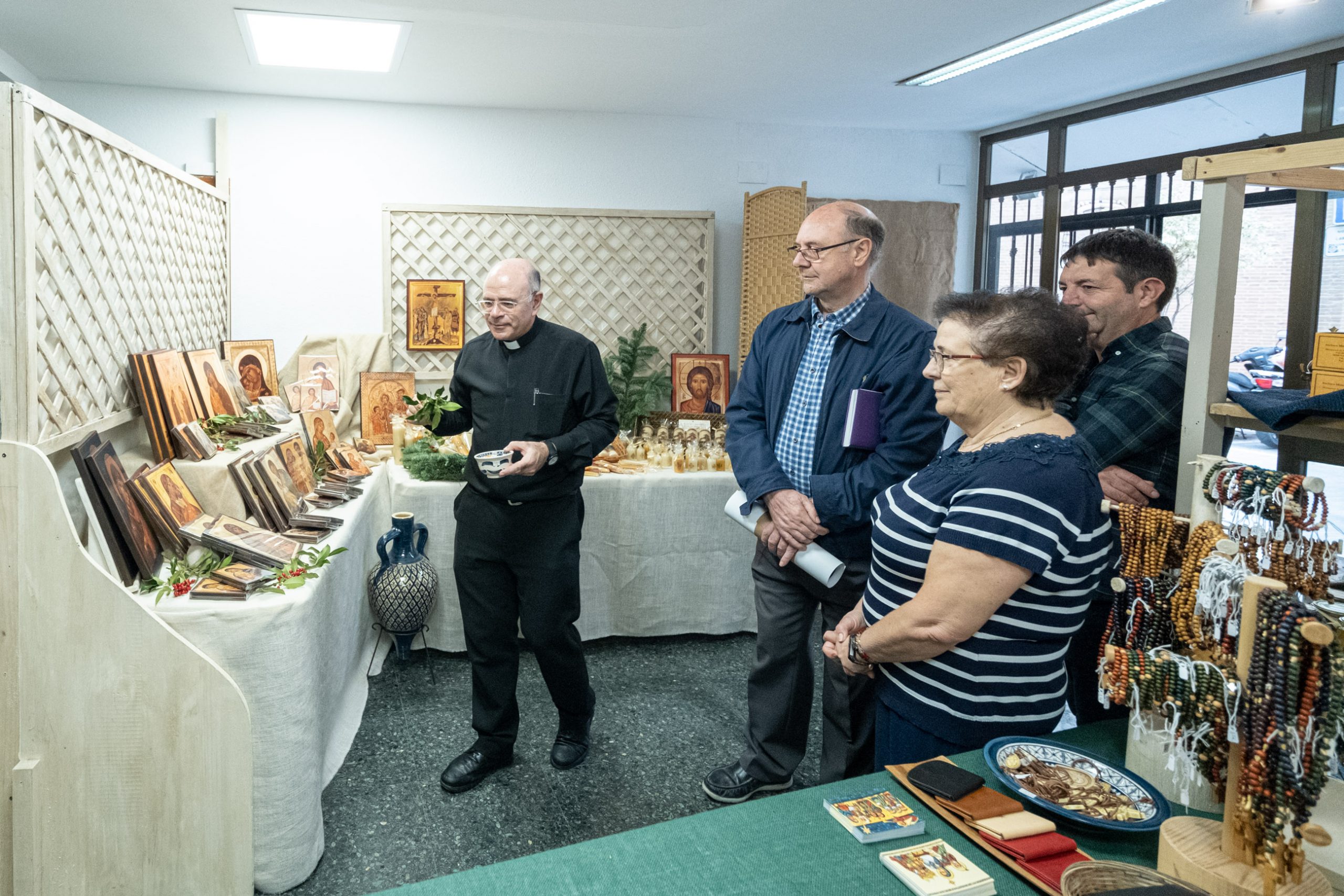 Las piezas de cerámica expuestas han sido pintadas a mano por las religiosas de las Hermanas de Belén de la Asunción de la Virgen y de San Bruno. También incluye tallas de madera, iconos elaborados siguiendo la tradición oriental, sobre tejido o madera, e incienso preparado en Tierra Santa por religiosos de la Familia Monástica de Belén.