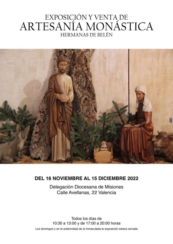 La sede de la delegación diocesana de Misiones del Arzobispado de Valencia acogerá una exposición benéfica, con piezas de artesanía monástica elaboradas por religiosas Hermanas de Belén de la Asunción de la Virgen y de San Bruno, que se inaugurará mañana, miércoles.