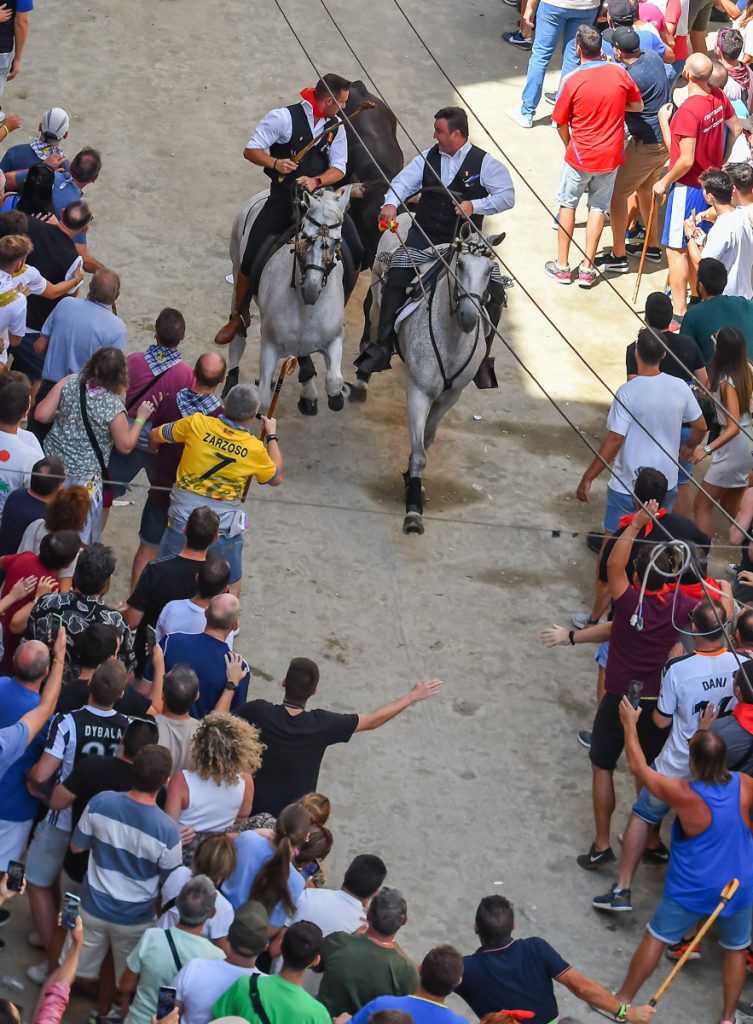 La séptima Entrada de Toros y Caballos de Segorbe ha sido la que más ha durado, casi 52 segundos. Un toro ha golpeado a Fernando Zarzoso causándole contusiones pero sin derribarle del caballo.