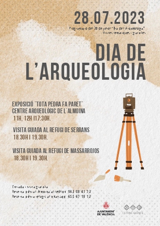 El Ayuntamiento de Valencia, ha programado una serie de actividades con motivo de la celebración, el próximo día 28 de julio, del Día Internacional de la Arqueología. Desde el Servicio Arqueológico Municipal, SIAM, se han propuesto diferentes actos de conmemoración, que consistirán en visitas guiadas abiertas al público de todas las edades al Centre Arqueològic de l’Almoina y a los refugios de la guerra civil de la calle Serranos y de Massarrojos.