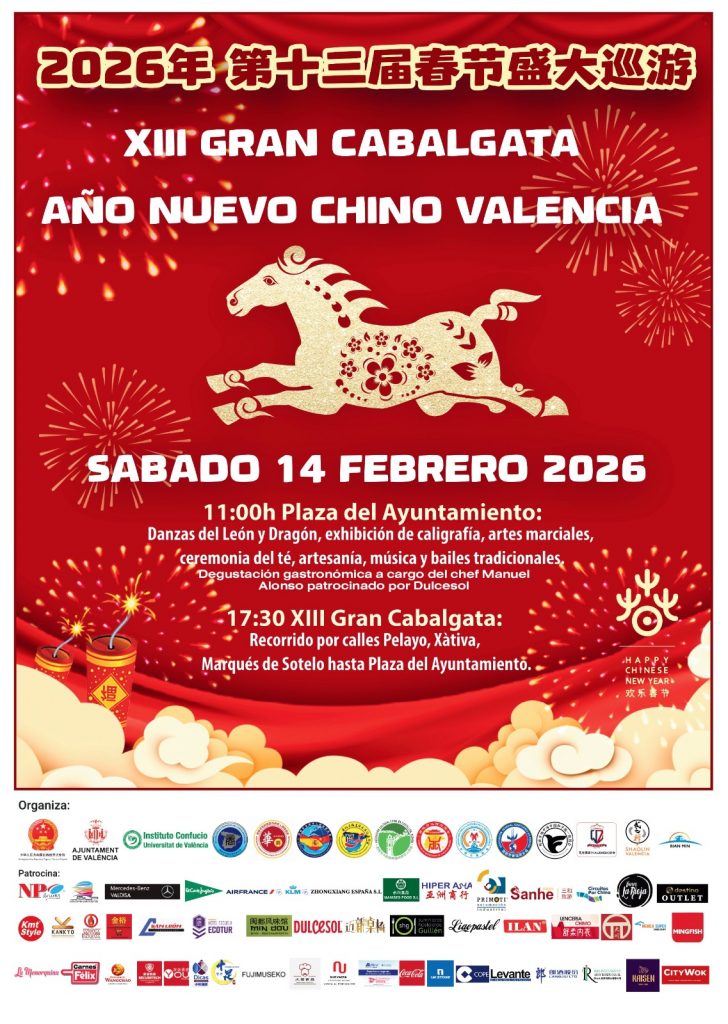 El centro de Valencia se teñirá de rojo el sábado 14 de febrero para celebrar la XV edición del Año Nuevo Chino, organizada por el Instituto Confucio de la Universitat de Valencia, que promete llenar la ciudad de música, danzas tradicionales, exhibiciones y talleres que acercarán la cultura milenaria china.