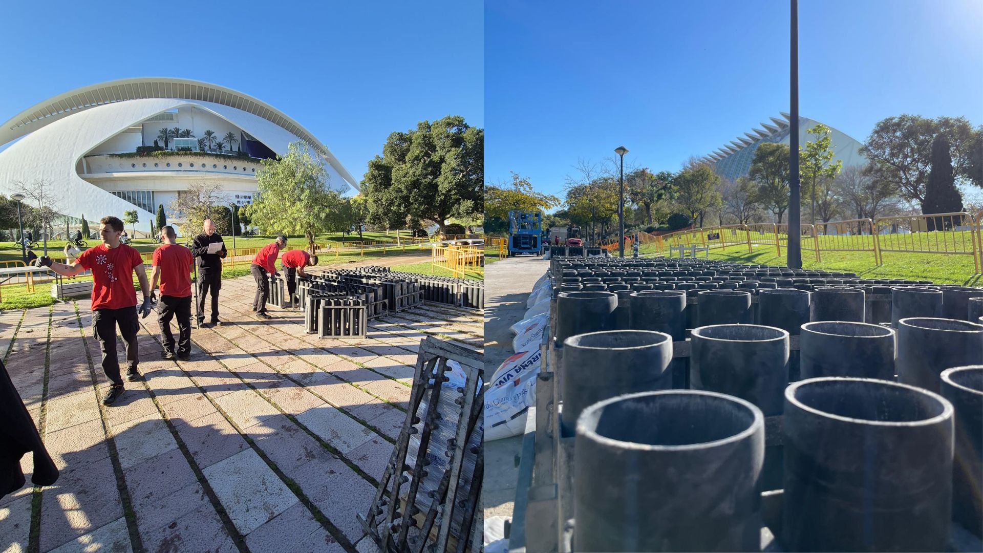 El montaje del castillo de Nochevieja, con el que València recibirá el año 2026, ya se ha iniciado en el río en la zona del puente de Montolivet. Los 22 operarios de la pirotecnia Vulcano, encargada de ofrecer este espectáculo, se afanan en planificar los más de 1.700 kilos de pólvora, de manera segura y precisa, para generar el impacto visual que se pretende en sus 9 minutos de duración.