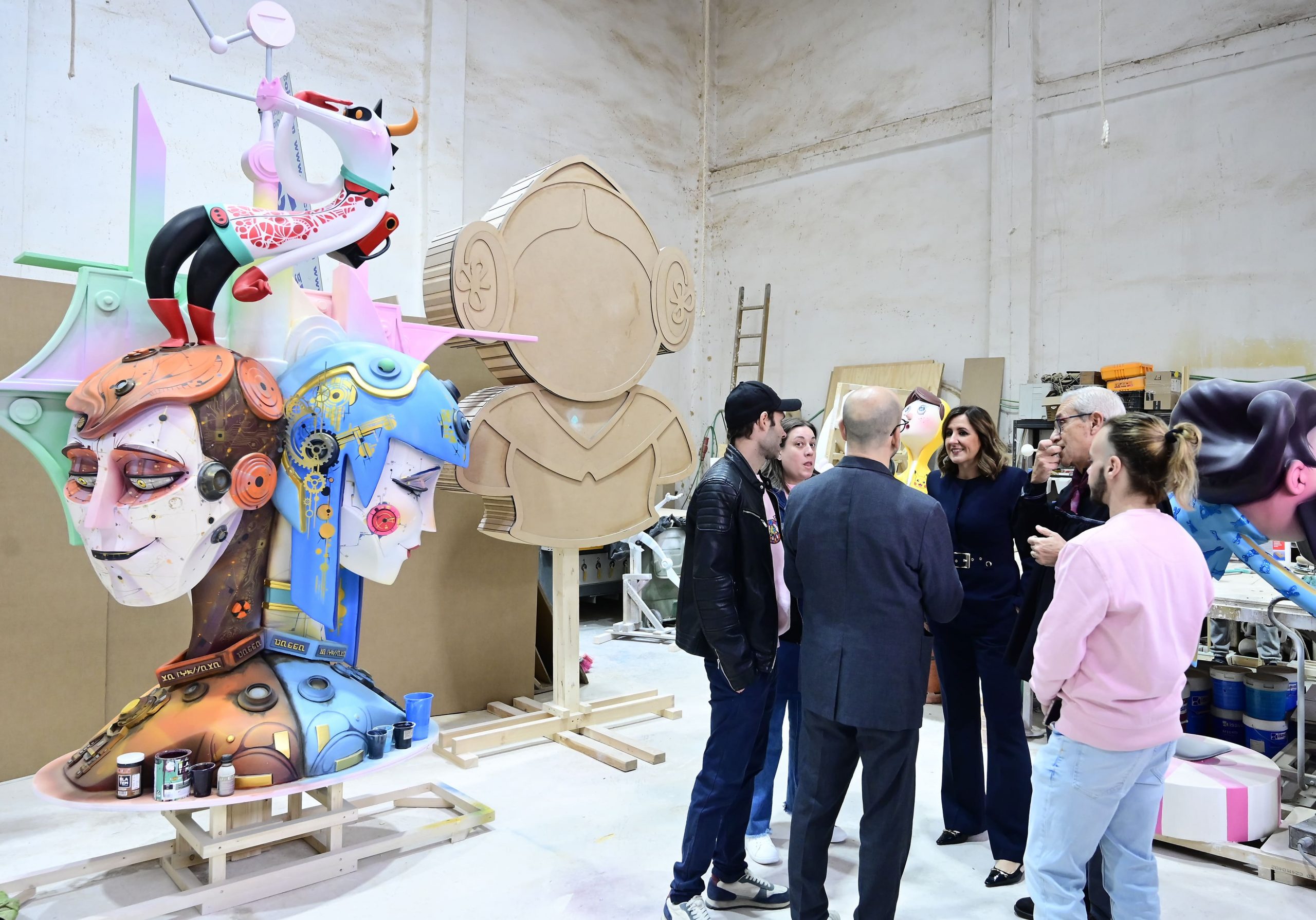 La comitiva municipal ha visitado hoy los talleres de Manuel Algarra Viguer, José Luis Platero Cosí y Zvonimir Ostoic “Z” en la Ciutat Fallera. Los talleres están en plena actividad febril a solo unos días de la plantà de los monumentos falleros. La alcaldesa y las falleras mayores han comprobado cómo los artistas rematan los últimos detalles de cada falla, pintan los últimos ninots y ajustan los últimos elementos para que las Fallas de 2026 luzcan en todo su esplendor.