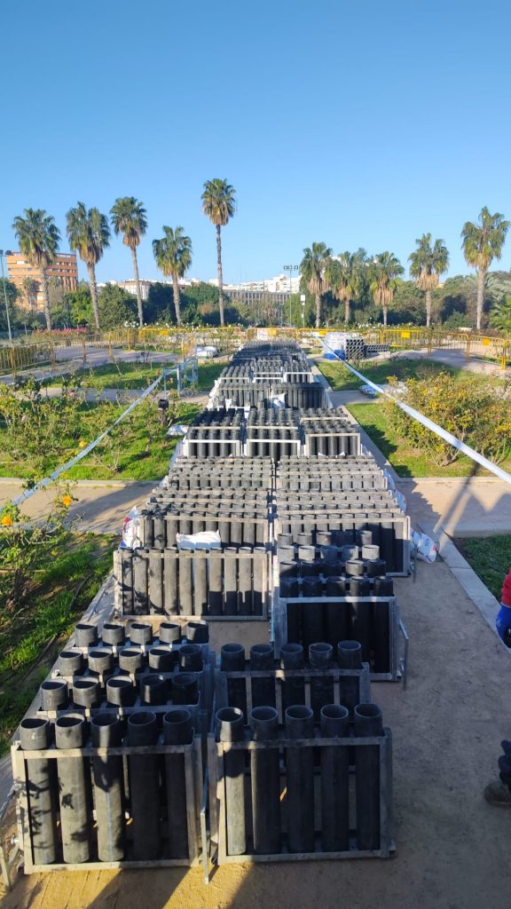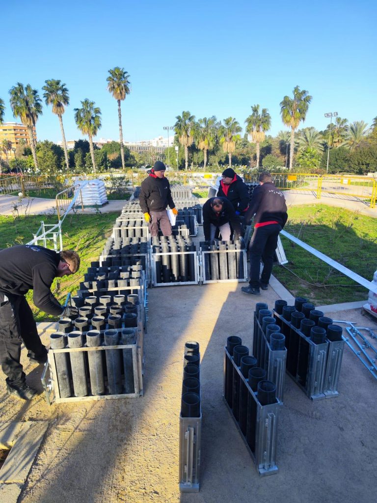 Serán nueve minutos intensos de espectáculo de luz y sonido, gracias a las más de 2.000 órdenes de fuego y los más de 1.700 kilos de material empleados, que harán vibrar el lecho del río, combinados con el minuto final en el centro de la ciudad para recibir a 2025. El espectáculo pirotécnico ha sido diseñado a partir de una estructura in crescendo, por la cantidad de artificios que se disparan y la cadencia entre las líneas de fuego. La tecnología GPS jugará un papel fundamental, ya que permitirá una absoluta coordinación entre los puntos del cauce del río. El 90% del material empleado a lo largo del cauce del río es biodegradable o desintegrable.