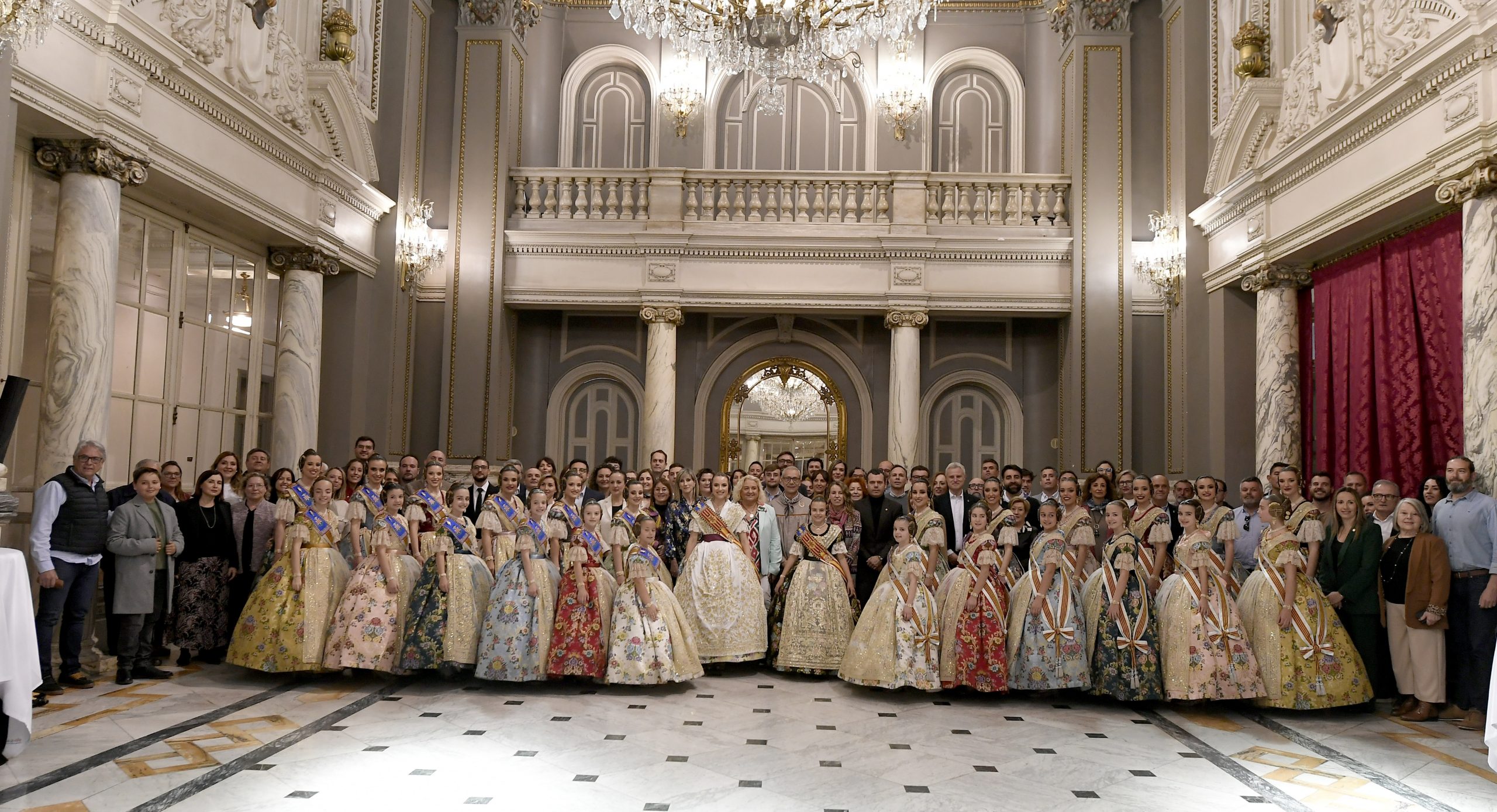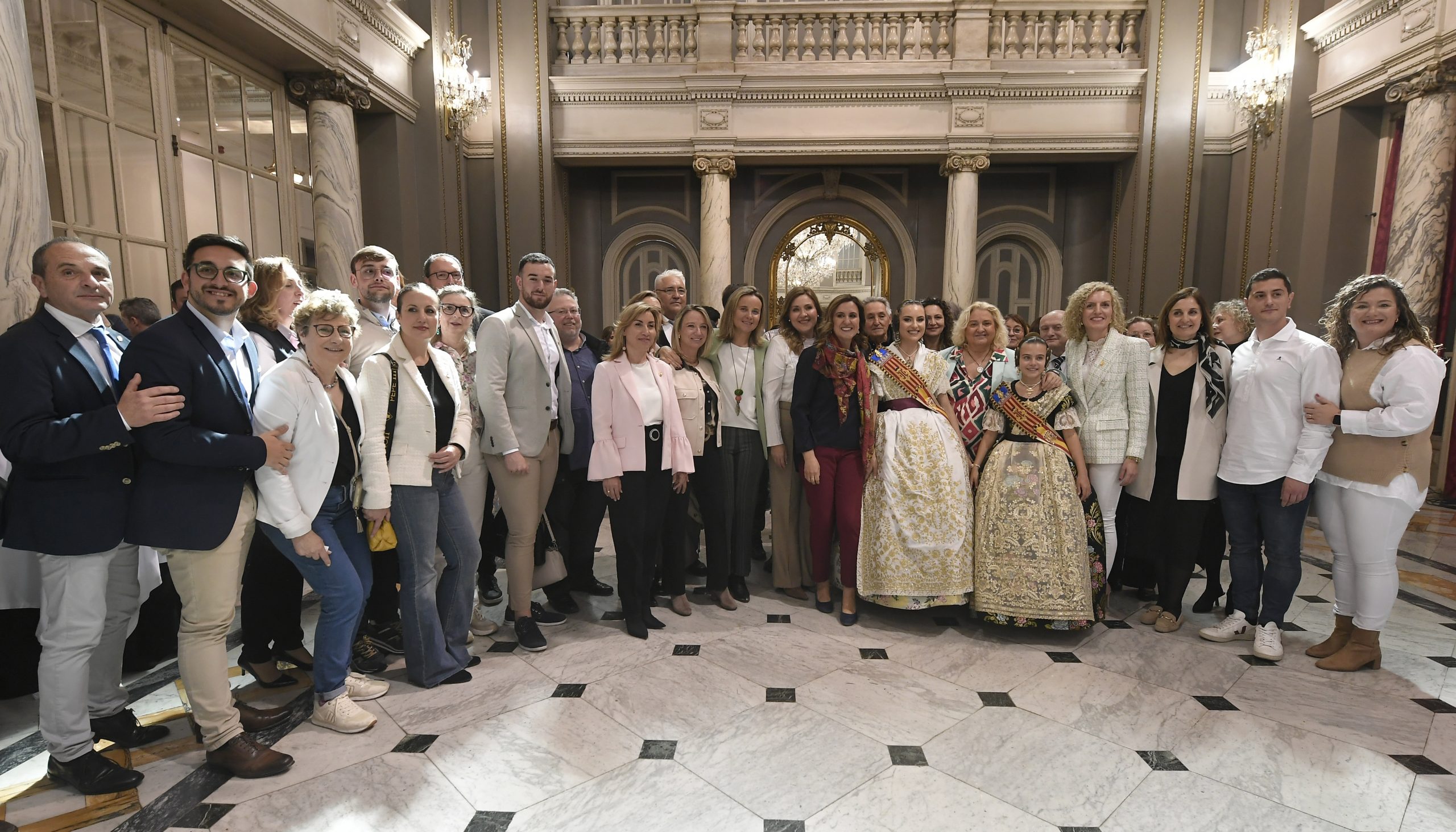 La alcaldesa de València, María José Catalá, junto con las falleras mayores de València y sus cortes de honor, miembros del equipo de gobierno y de la corporación municipal ha recibido, en el Salón de Cristal del Ayuntamiento, al presidente de la Diputación de València, Vicente José Mompó, a los alcaldes y alcaldesas de los municipios de la Comunitat Valencia, así como los alcaldes y alcaldesas pedáneos que plantan monumentos falleros y celebran las Fallas en sus respectivos territorios.