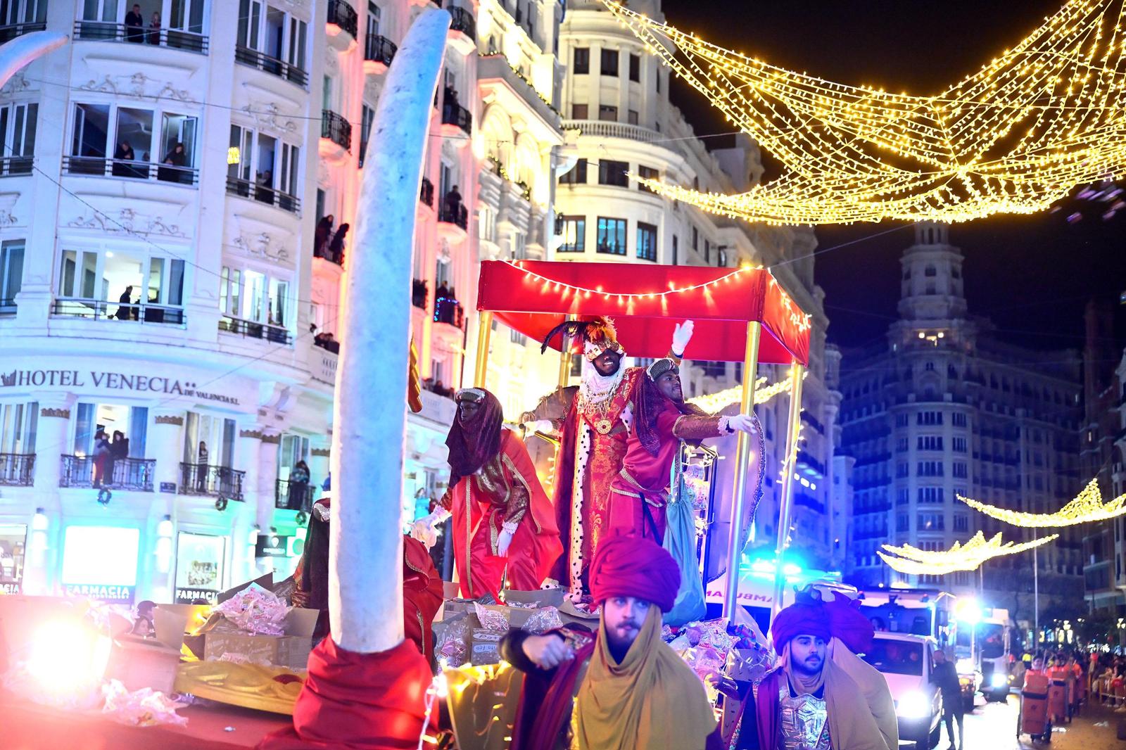 Durante el desfile, los personajes bíblicos han repartido caramelos al público ante el paso de entidades como la Asociación de Comerciantes del Centro Histórico, À Punt, la EMT, Bioparc con música africana, el Valencia CF o el Levante UD regalando pelotas a los niños, así como de patrocinadores. También han desfilado la Policía Local, la Policía Nacional o los Bomberos.