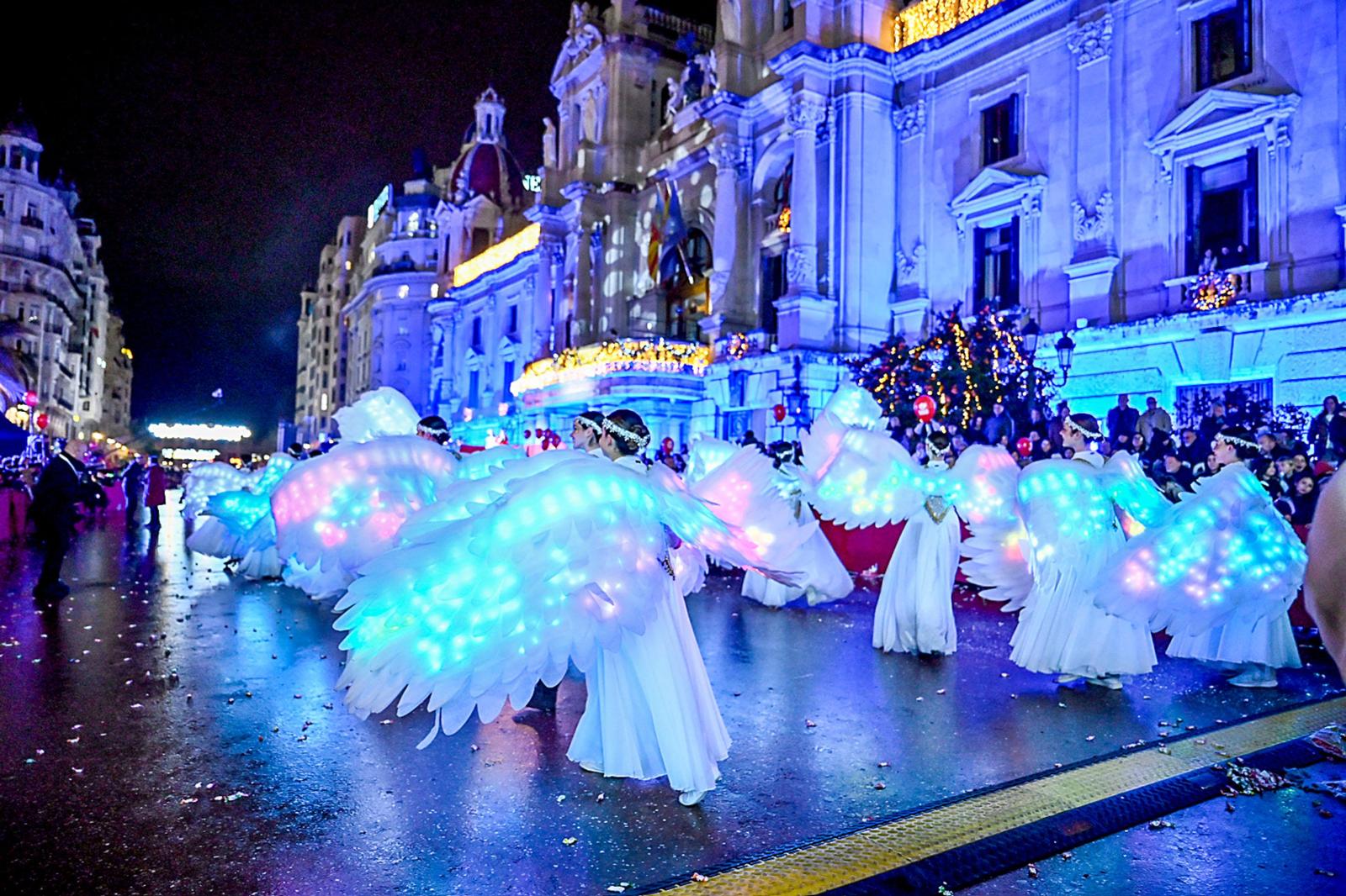 Entre las novedades artísticas de esta edición ha sobresalido, «la diosa de la ilusión», una figura de cinco metros, diseñada para la cabalgata de Valencia.