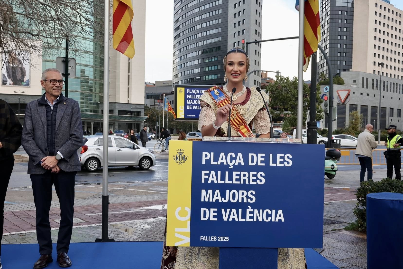 • La alcaldesa de València, María José Catalá, ha inaugurado la plaza de las Falleras Mayores de València ubicada en la confluencia del paseo de l’Albereda y el puente de l’Assut de l’Or