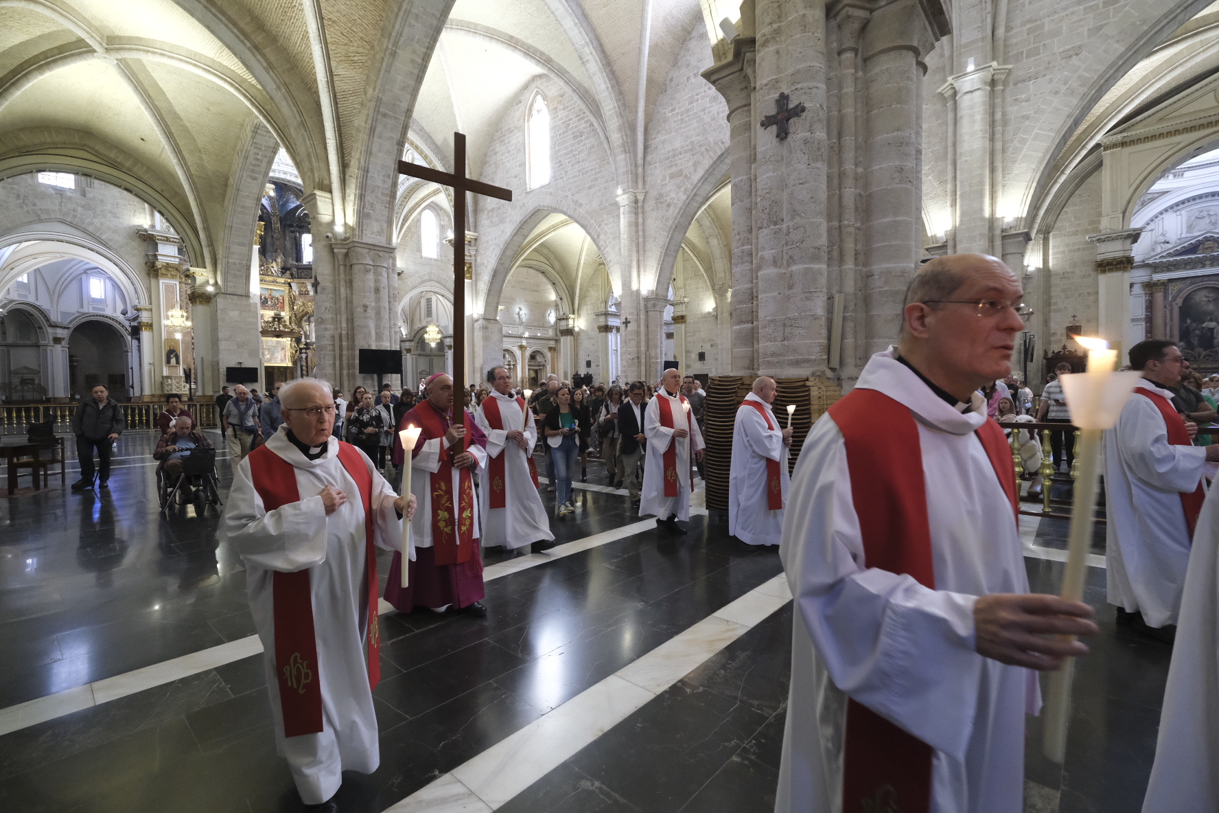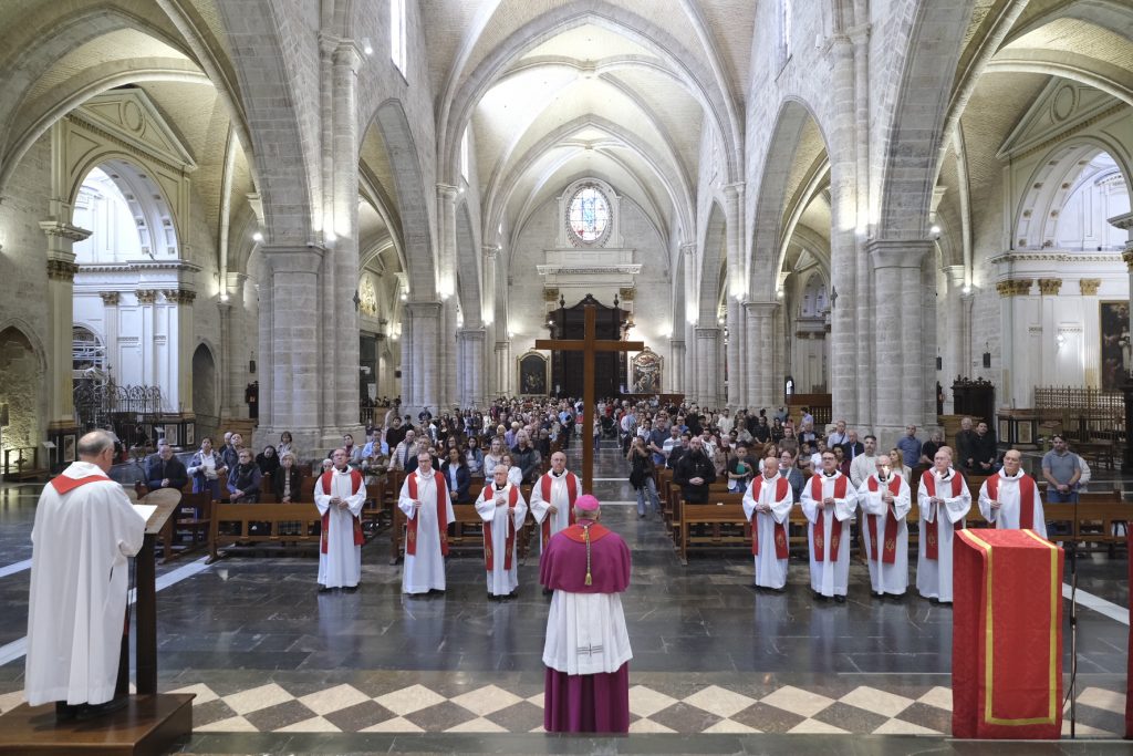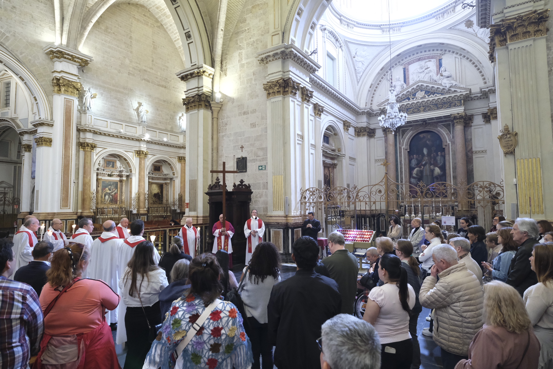 El Arzobispo de Valencia, mons. Enrique Benavent, está presidiendo las misas y Oficios de Semana Santa que se celebran en la Catedral, con la participación del Cabildo y presencia de fieles. Hoy, Viernes Santo, a las 10.30 horas ha tenido lugar el Oficio de Lecturas y Laudes. Y al mediodía, el Arzobispo ha presidido el Vía Crucis solemne por el interior de la Seo.