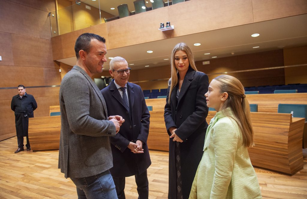 Mompó ha mostrado a Berta y a Lucía las principales estancias de la institución y algunos elementos de su patrimonio, como la Cadira d’Or, que ocupó el rey Alfonso XIII en la Exposición Regional de 1909. También han visitado el Salón de Plenos, donde Vicent Mompó les ha explicado el funcionamiento de la Diputación y su carácter representativo de los 266 municipios y las tres entidades locales menores de la provincia.