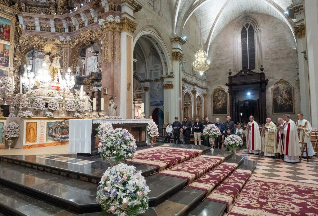 La imagen original de la Patrona fue colocada en el retablo instalado en la Catedral , de orden neoclásico, que recuerda al que se hizo en su día para la Coronación de la Virgen en 1923. La imagen de la Mare de Déu está acompañada por dos ángeles adoradores turiferarios arrodillados y portando incensarios, que se han ofrecido para la ocasión de una manera excepcional. En el retablo se ha colocado igualmente una imagen de san Vicente Ferrer, de 1600 de plata sobredorada, y otra de san Vicente Mártir, de madera sobreplateada de Esteve Bonet.