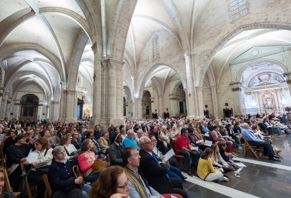 La Catedral de Valencia acogió anoche la Vigilia Mariana- dentro de los actos finales del Centenario de la Coronación de la Virgen de los Desamparados- presidida por el Arzobispo de Valencia, monseñor Enrique Benavnet- y el paso de miles de fieles y devotos a lo largo de toda la noche en la que ha permanecido abierta para venerar la imagen original de la Patrona.