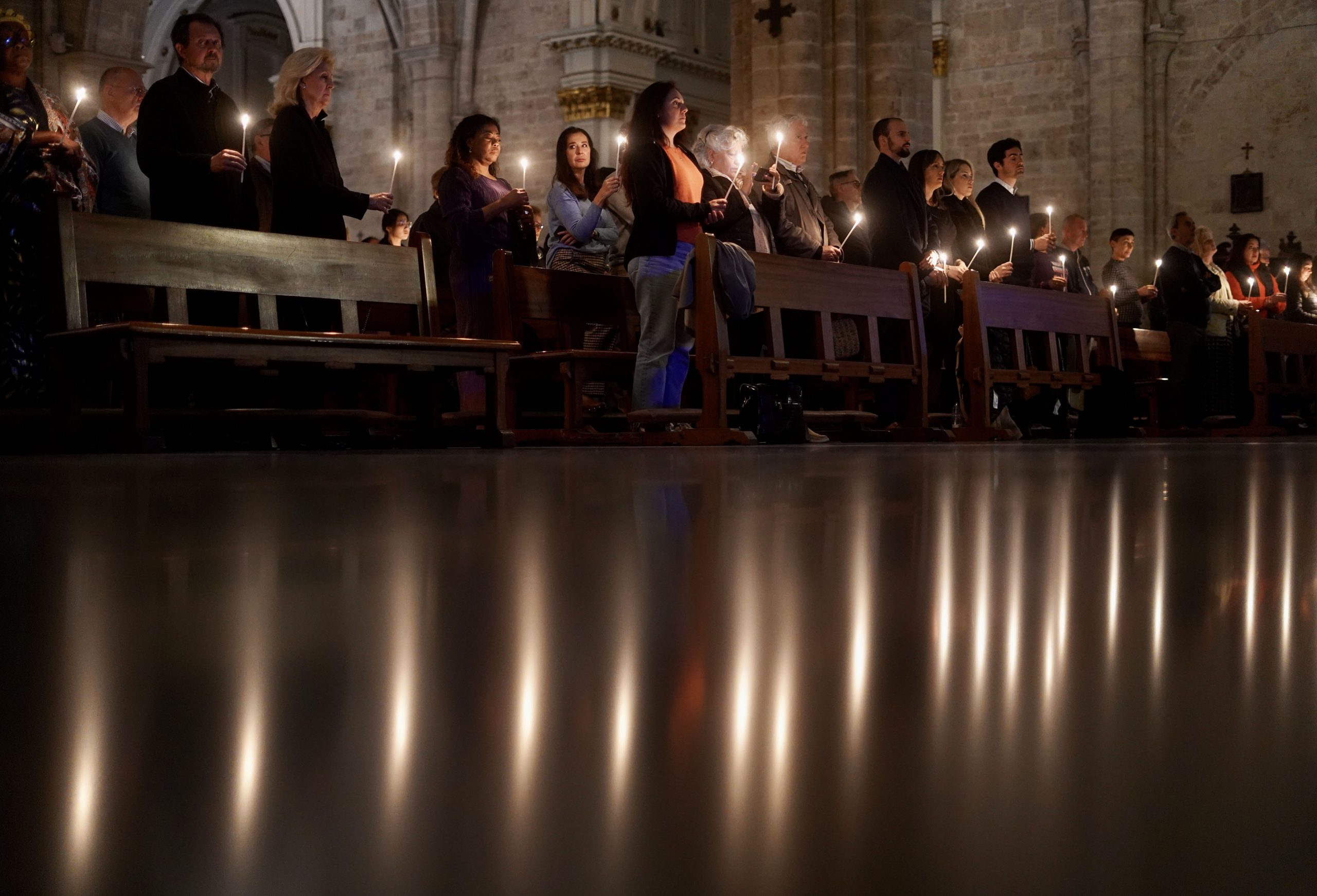 En la Vigilia Pascual se repartieron candelas que fueron encendidas con el cirio pascual, el rito de la aspersión tras la renovación de las promesas bautismales y los actos fraternos tras la celebración de la Vigilia.
