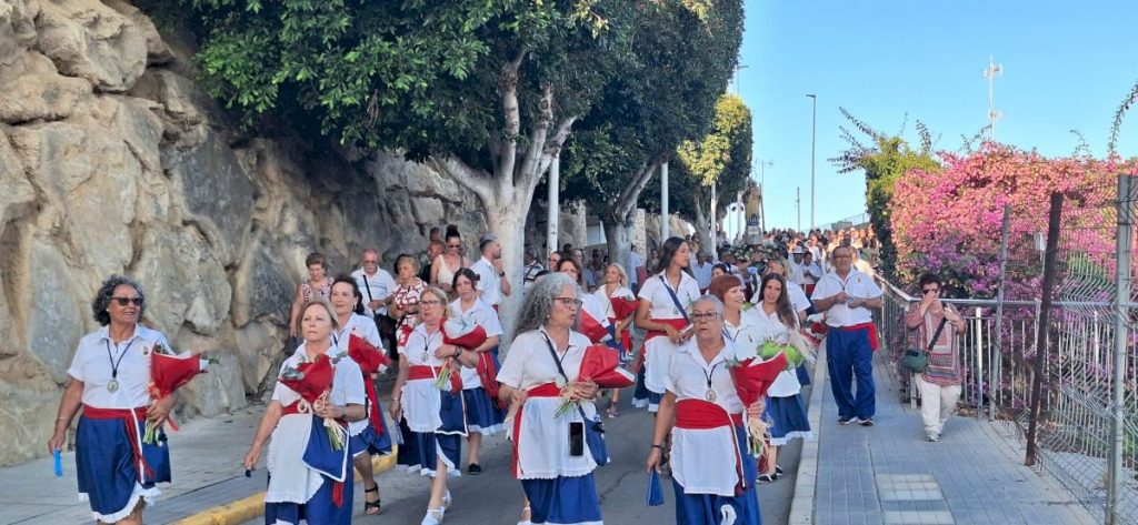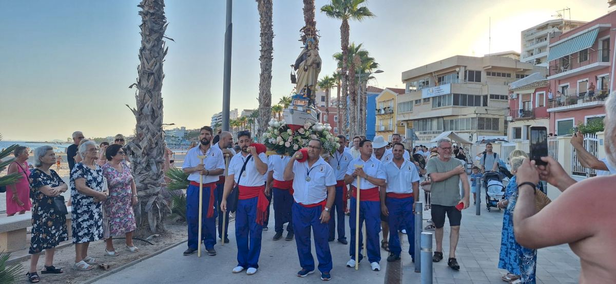 Tras la misa, oficiada por el sacerdote Juan Bautista Linares, la imagen fue llevada en procesión por marineros y marineras por las calles de la localidad donde fieles, vecinos y turistas esperaban el paso de la imagen. En el acto participaron el Alcalde Marcos Zaragoza así como miembros de la Corporación municipal; el presidente de la Cofradía de Pescadores, Miguel Solbes; entre otros.