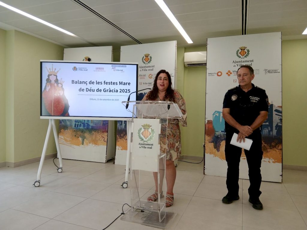 La regidora de Festes, Miriam Caravaca, i el comissari principal cap de la Policia Local, José Ramón Nieto, han presentat hui el balanç de les festes en honor a la Mare de Déu de Gràcia, que han destacat per l’assistència massiva i les actuacions portades a cap per part de les diferents comissions, entitats i cossos de seguretat.