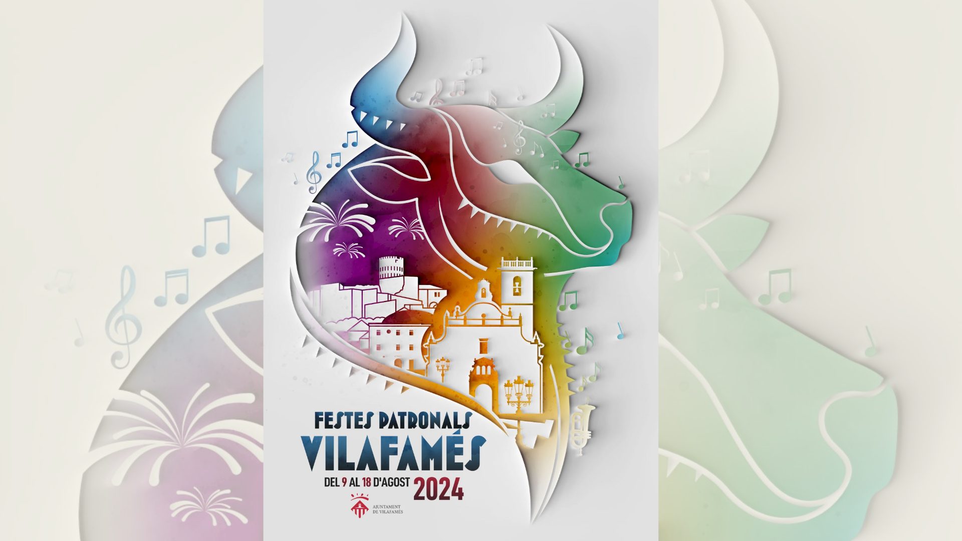 El artista Rubén Alesandro Lucas Garcia ha sido el vencedor del concurso organizado por el Ayuntamiento de Vilafamés para seleccionar el cartel que ilustra las Fiestas Patronales del 2024. Con tres siluetas características del pueblo y la figura de un toro y decoración musical, el autor ha plasmado el carácter de unos días de fiesta, cultura, folclore, hermandad, mucha música y diversión.