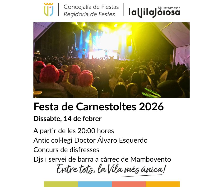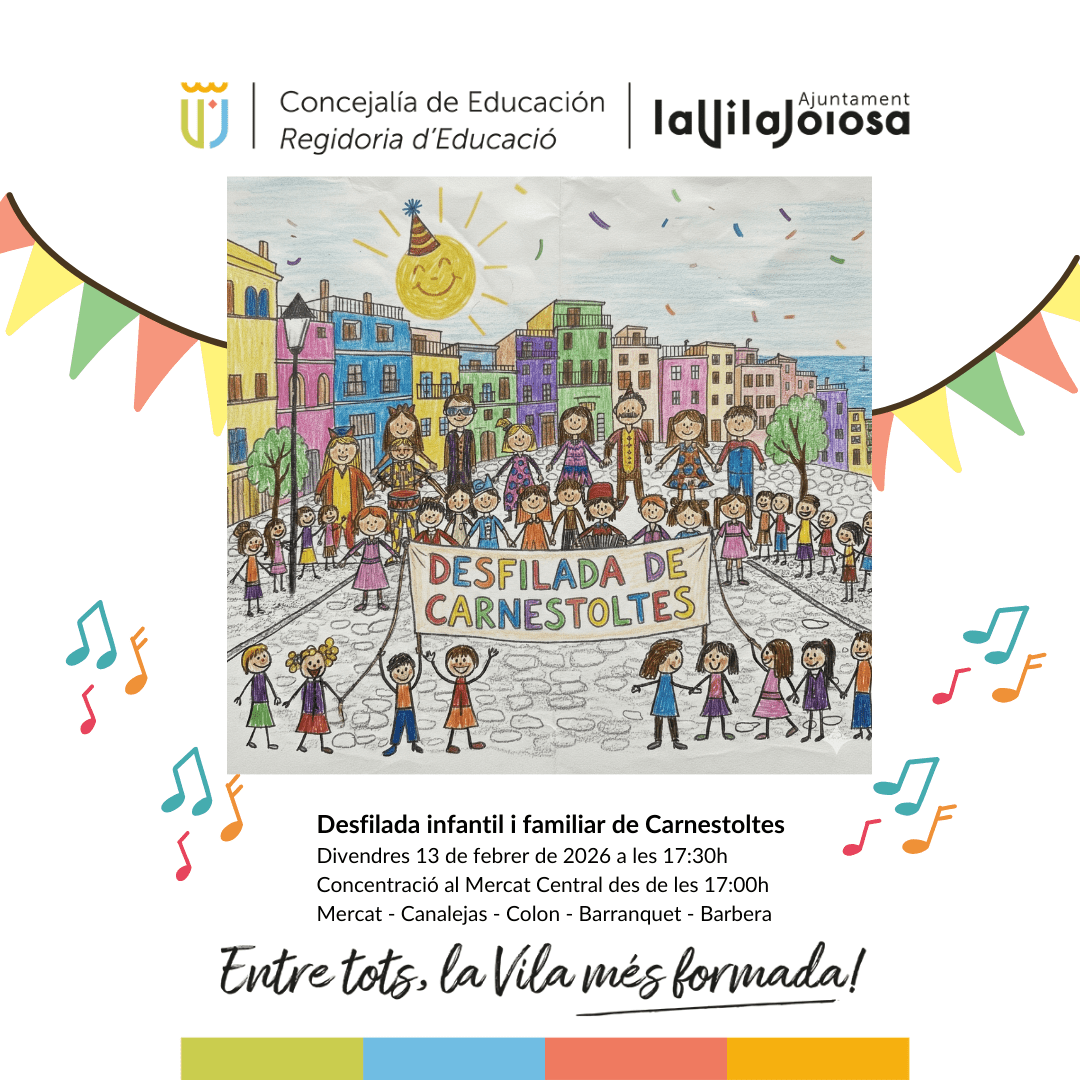 Villajoyosa celebrará el Carnaval 2026 los días 13 y 14 de febrero con un evento infantil y otro para adultos. Los más pequeños podrán disfrutar de un desfile de disfraces por las calles del centro urbano y tres fiestas en tres barrios del municipio. Para los más mayores, habrá una gran fiesta con temática canaria en el antiguo colegio Doctor Esquerdo.