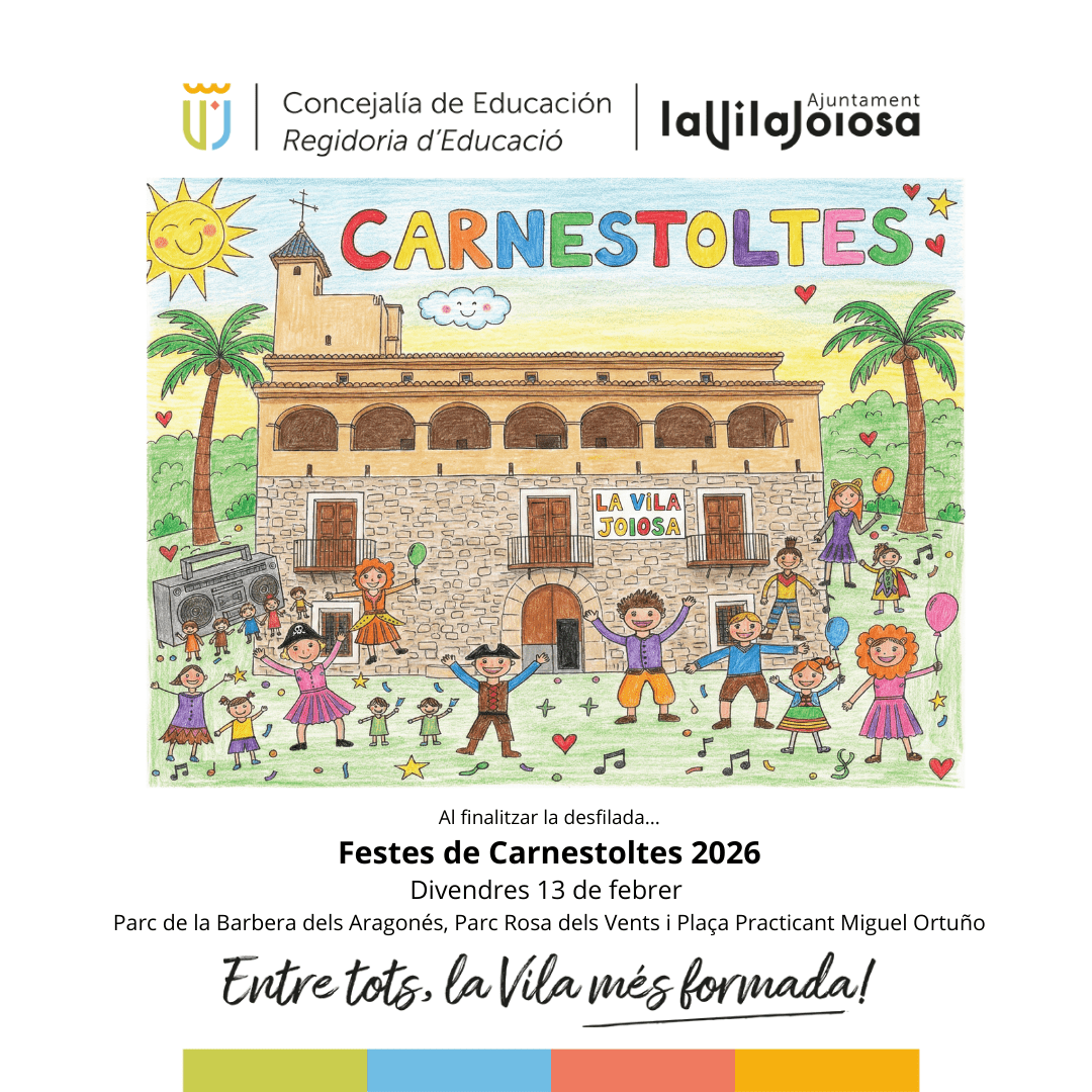 El viernes, 13 de febrero, la Concejalía de Educación organiza un desfile infantil y familiar en el centro urbano y tres fiestas de Carnaval en la Barbera dels Aragonés y en los barrios de la Ermita y La Cala.
