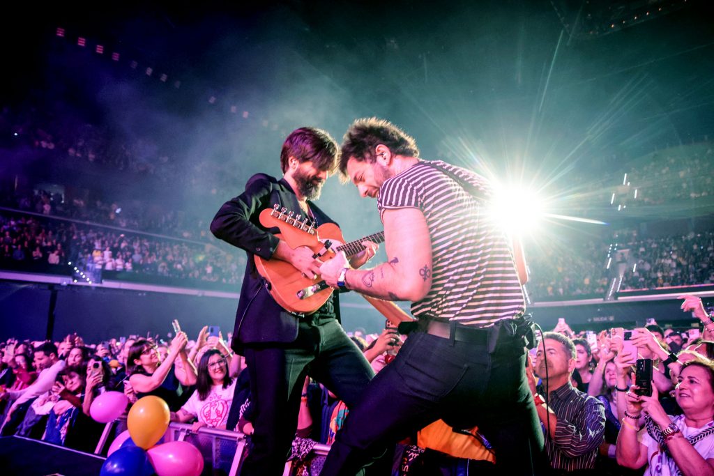 El concierto ha arrancado tras una introducción atmosférica que dio paso a «Dolor y Gloria». Desde ese instante, ha quedado claro que la apuesta de la noche era la intensidad. El setlist, un recorrido de 25 canciones que no ha dado tregua, ha transitado por momentos de pulso eléctrico como «La voz del presidente» y pasajes de épica colectiva como «A dónde ir» o «Justo cuando el mundo apriete».
