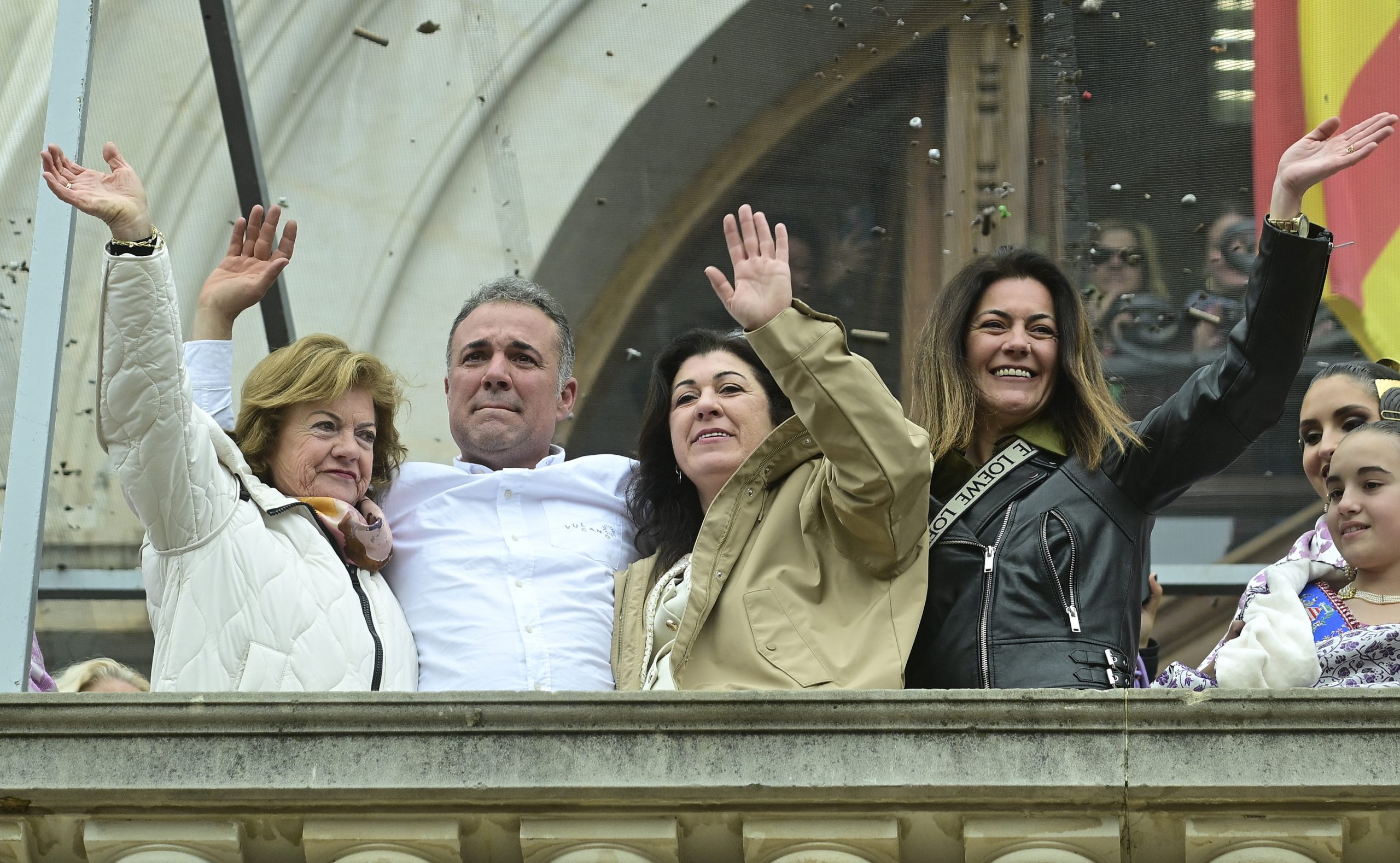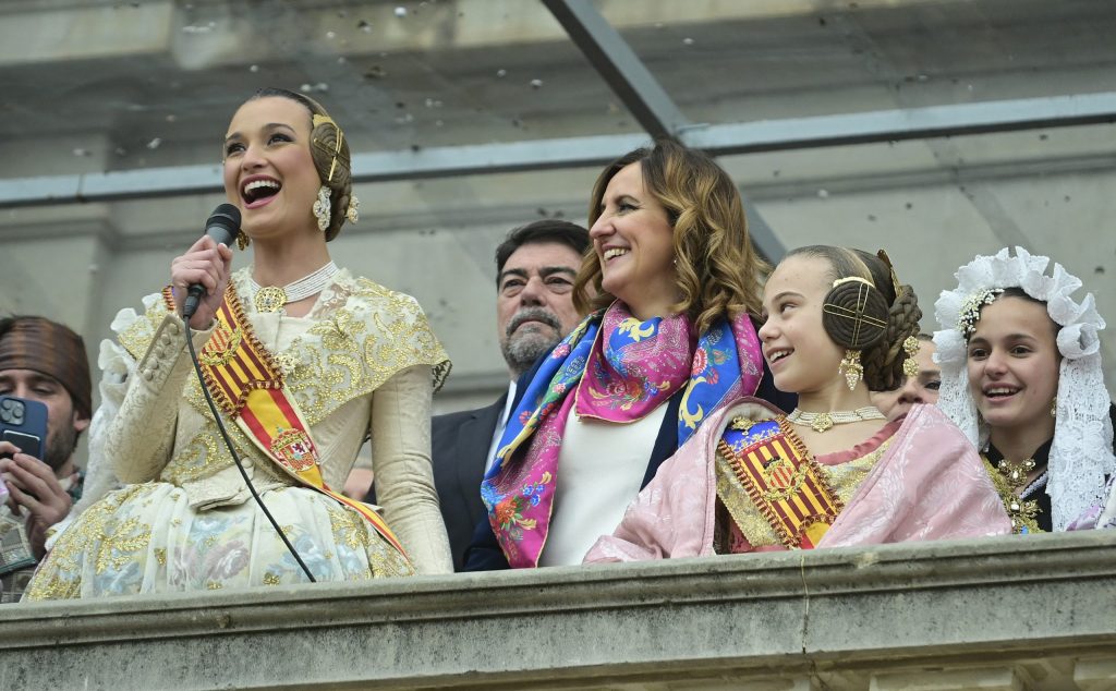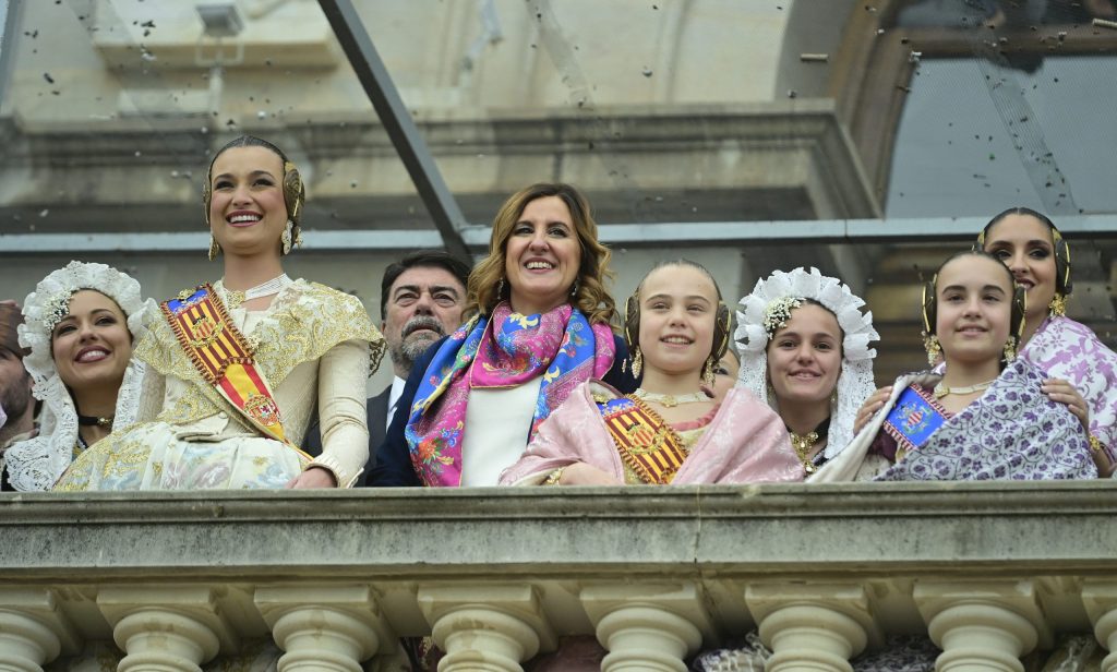 Entre los invitados e invitadas a la balconada de la Casa Consistorial se encontraban el ministro de Cultura, Ernest Urtasun; la consellera de Innovación, Industria, Comercio y Turismo, Marian Cano; el alcalde de Alicante, Luis Barcala; así como el vicepresidente primero de la Mesa de Les Corts, Alfredo Castelló.