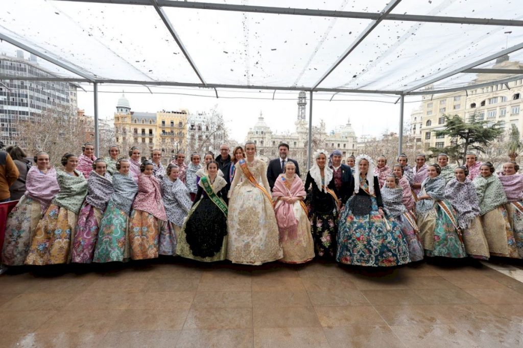 En el Ayuntamiento también se han dado cita los representantes de las comisiones falleras de Falla Poble, plaça Sant Roc y Falla Tres Camins-Pinedo. En representación de los pueblos de la provincia de València han acudido al balcón las Juntas Locales Falleras de Xàtiva y Alaquàs.
