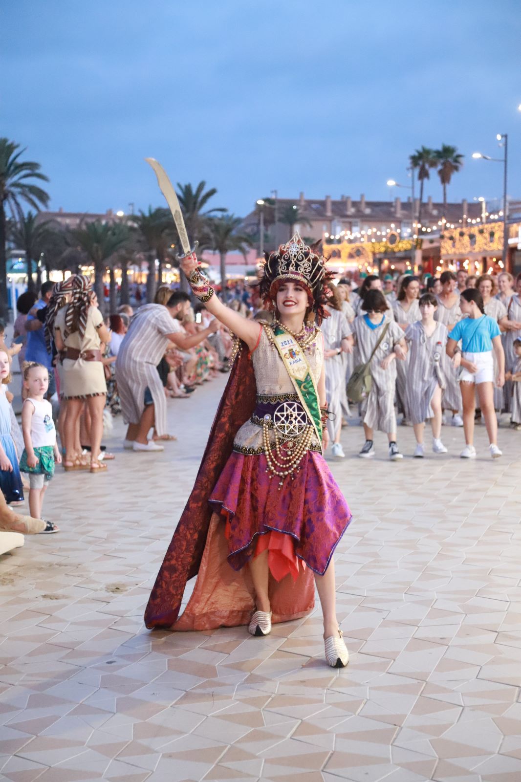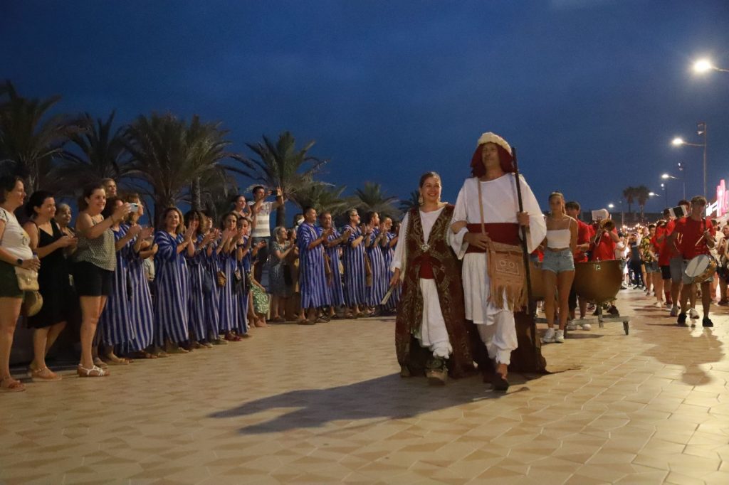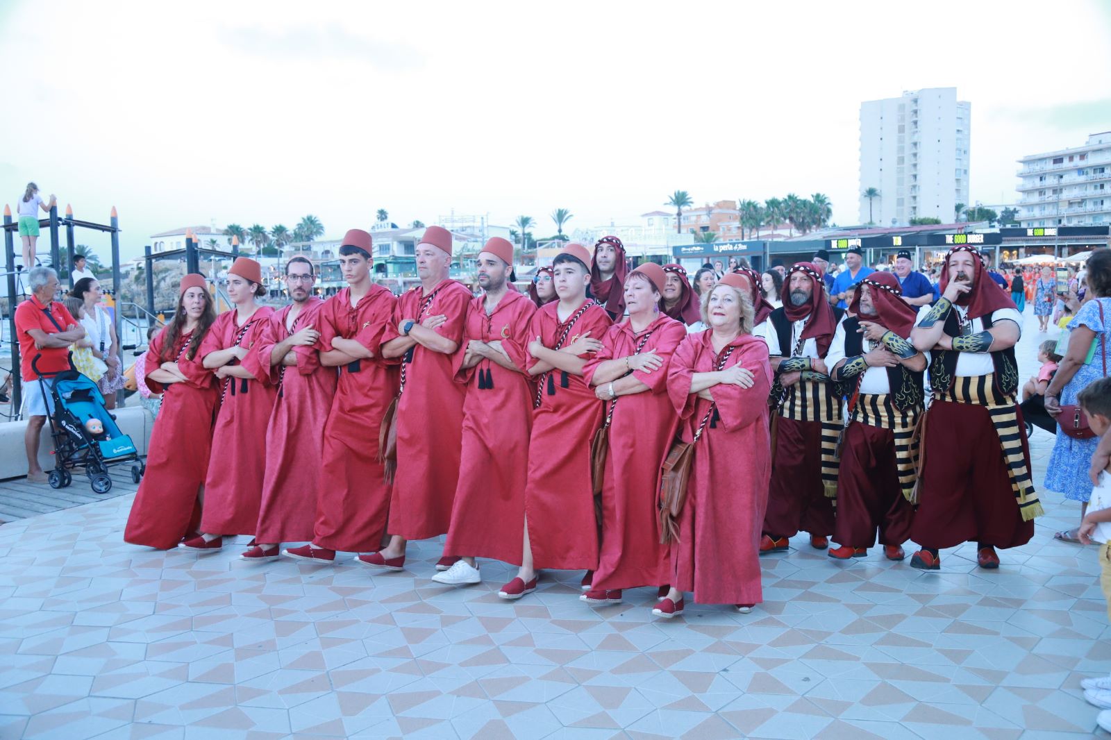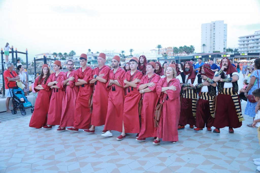 Las tropas moras y cristianas continúan extendiendo su alegría y colorido por cada rincón de Xàbia. Después de tomar las calles de Aduanas, han conquistado las tierras de El Arenal en su tradicional visita al Paseo del Tenista David Ferrer.