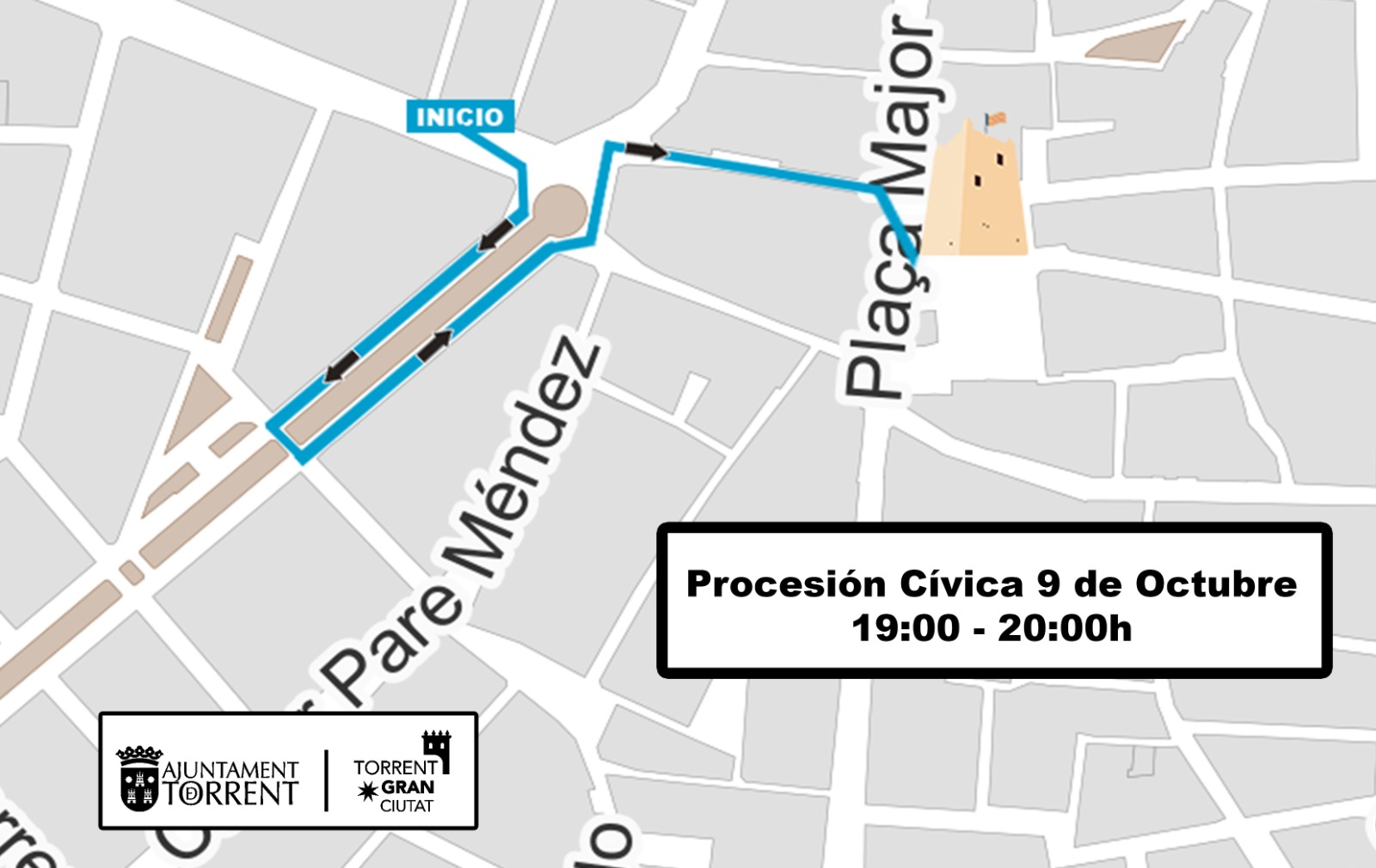 El recorrido transcurre desde el Ayuntamiento, por la Avenida al Vedat, donde se vuelve por la misma, a la altura de la calle Moralets, hasta finalizar en la Plaza Mayor, junto a la Torre.