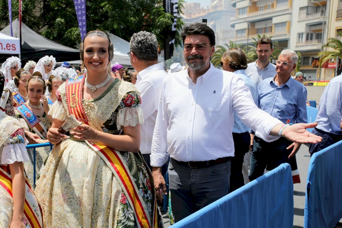 La mascletà “atómica, mecanizada y digital”, como la ha definido el gerente de la empresa, ha comenzado con los tradicionales truenos de aviso y 50 metros de traca valenciana. Han seguido cuatro retenciones aéreas compuestas de truenos de aviso. Al mismo tiempo se han podido ver efectos de serpentinas, silbatos, zumbadoras, sirenas y distintos colores, que han conseguido sorprender a los miles de personas congregadas en el perímetro de la Plaza de los Luceros, que han vibrado con el gran despliegue de la firma castellonense.